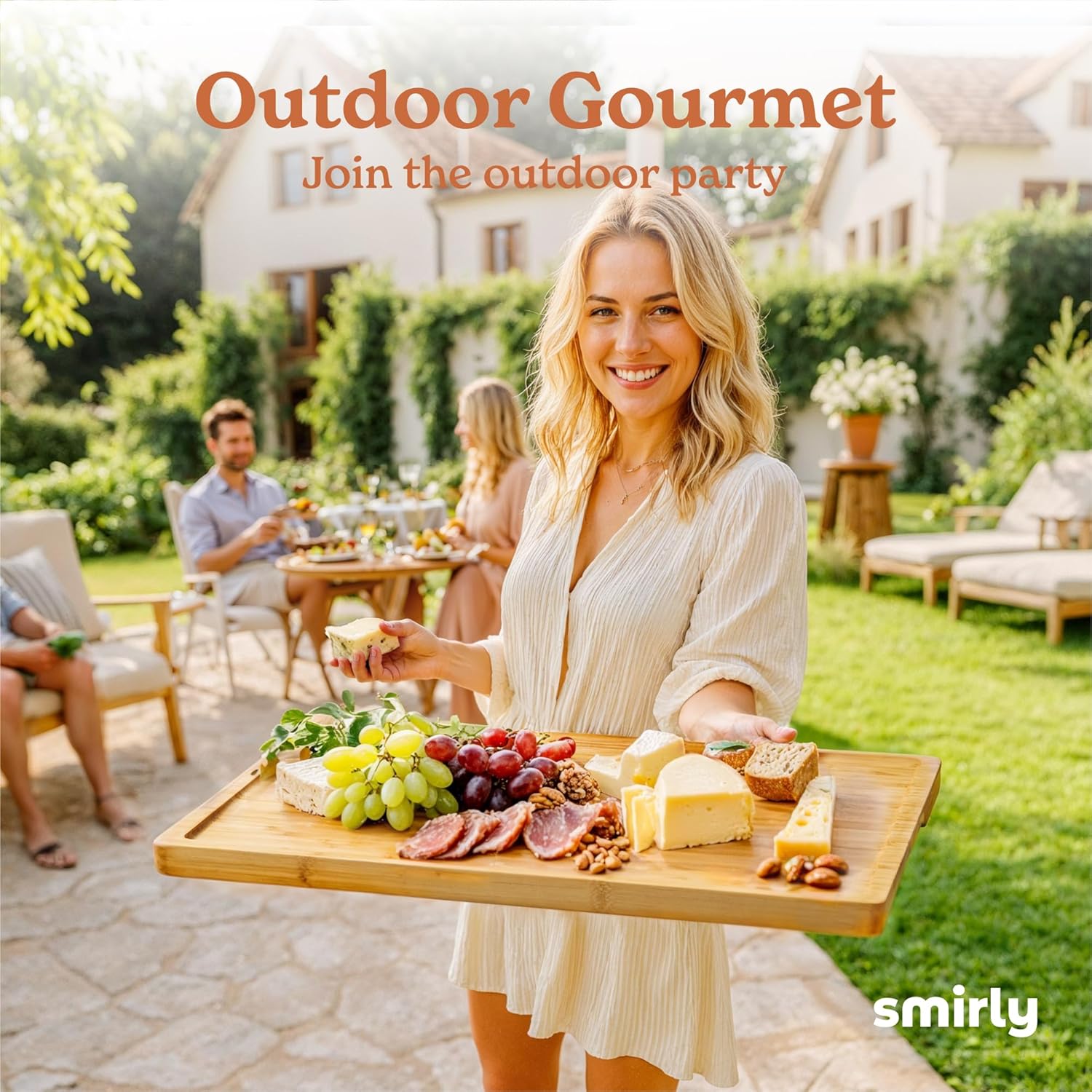 - Add Simplicity and Convenience - Our cutting boards for kitchen save you time and add functionality. Smirly’s bamboo cutting boards feature non-slip feet, easy-grip handles, and juice grooves. These durable wooden cutting boards are built to last.