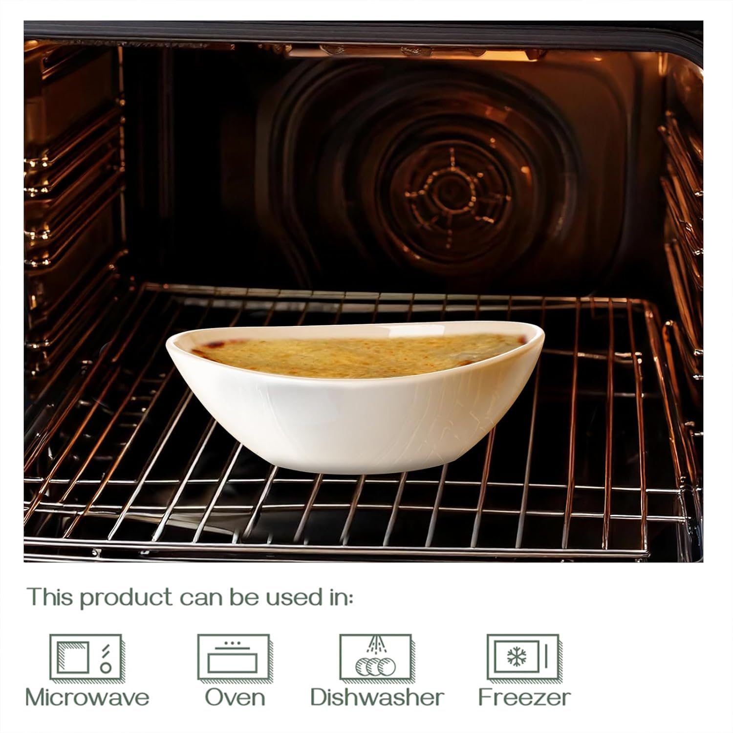 - Unique Oval Shape Design: This curve collection bowls has a stylish shape with clean and curved lines, which adds a modern touch on your table. Large bowls could quickly cool the food, save your time to taste delicious food. The classic soft white goes with other tableware.