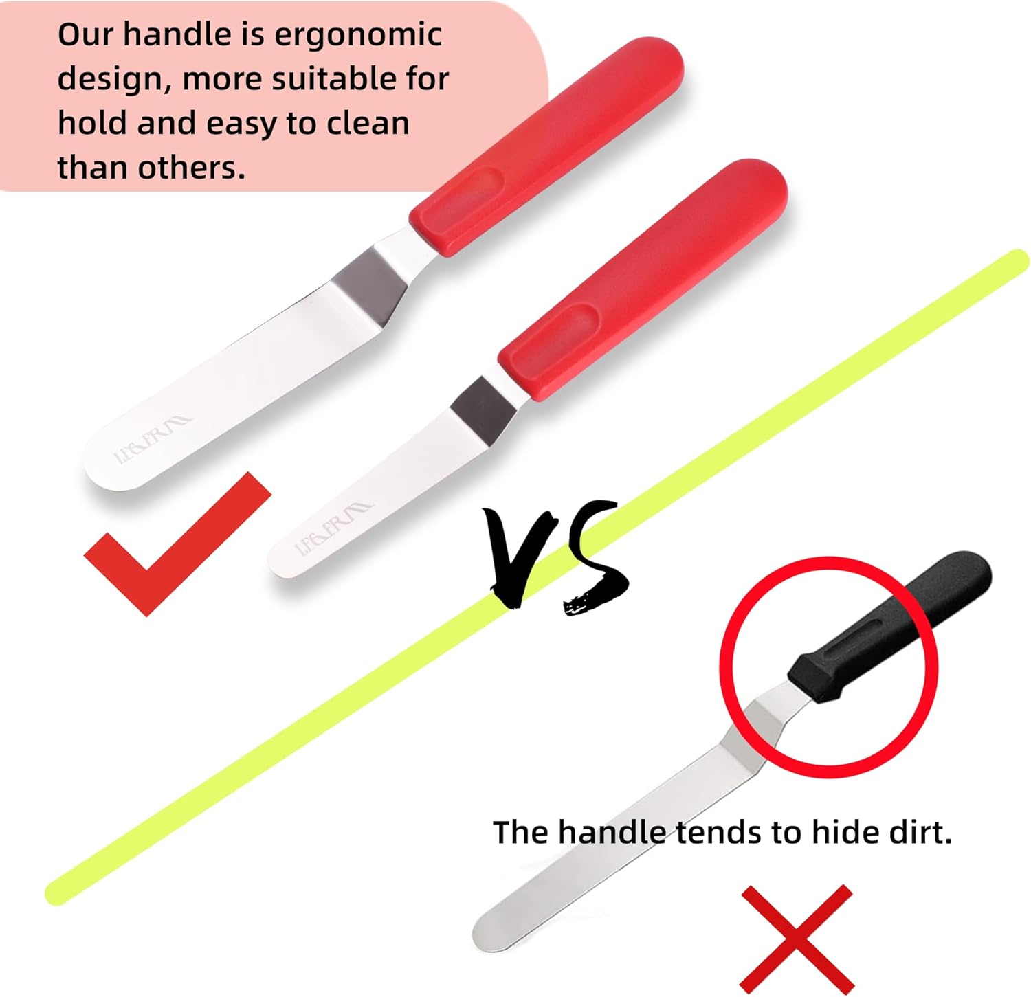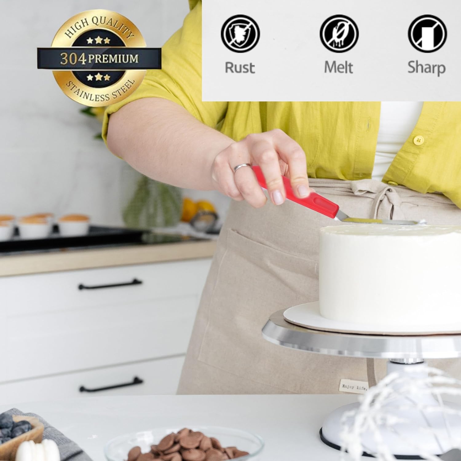 Cake Offset Spatula set of 4 6 8 inch Angled Icing Spatula Cake Decorating Frosting Knife, Red