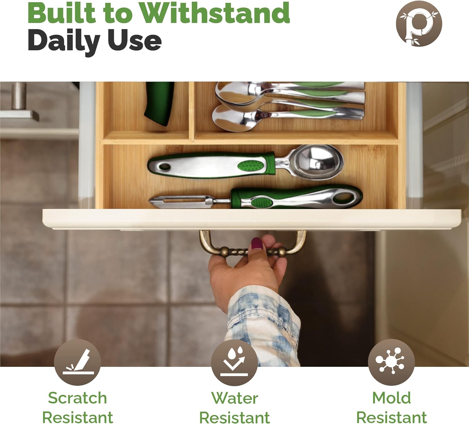 - SUPERIOR DESIGN SOLUTIONS: The only bamboo drawer organizer that offers all-in-one features: 100% bamboo (even the base), No Toxic MDF, Slip-resistant, Extra Depth, Strong & Durable Construction. This is undoubtedly the best drawer organizer available and our reviews are the testament of the quality.