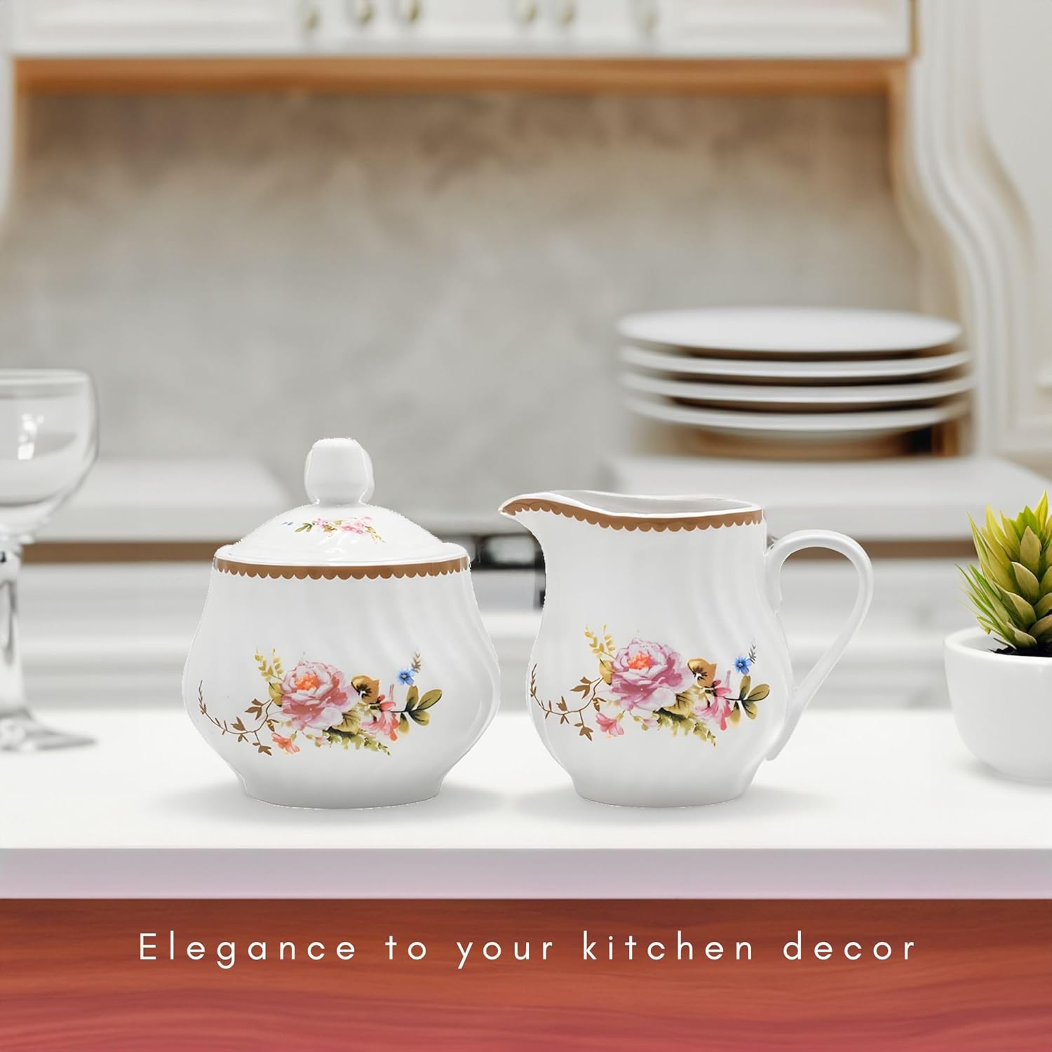 Sugar and Creamer Set - Porcelain Sugar and Creamer Floral Vintage Tea Set with Elegant Embossed Swirls - Exquisite Fine China Tea Set for Parties & Celebrations - Timeless Rose Set by Lynns