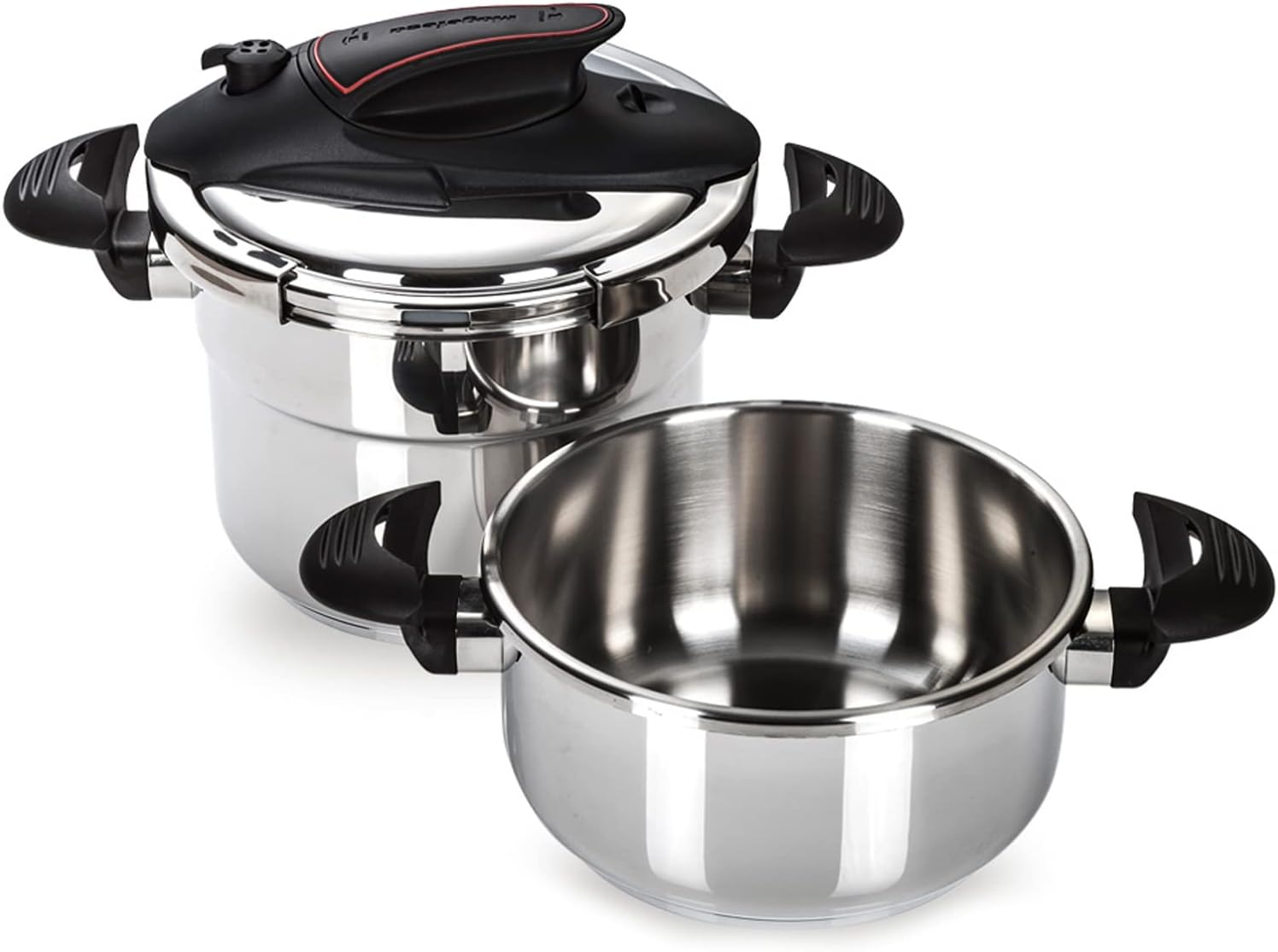 MAGEFESA Prisma Pressure Cooker, 4.2+6.3 Qt, 18/10 Stainless Steel, Easy Lock, Induction Compatible, 5 Safety Systems, 11.6 PSI