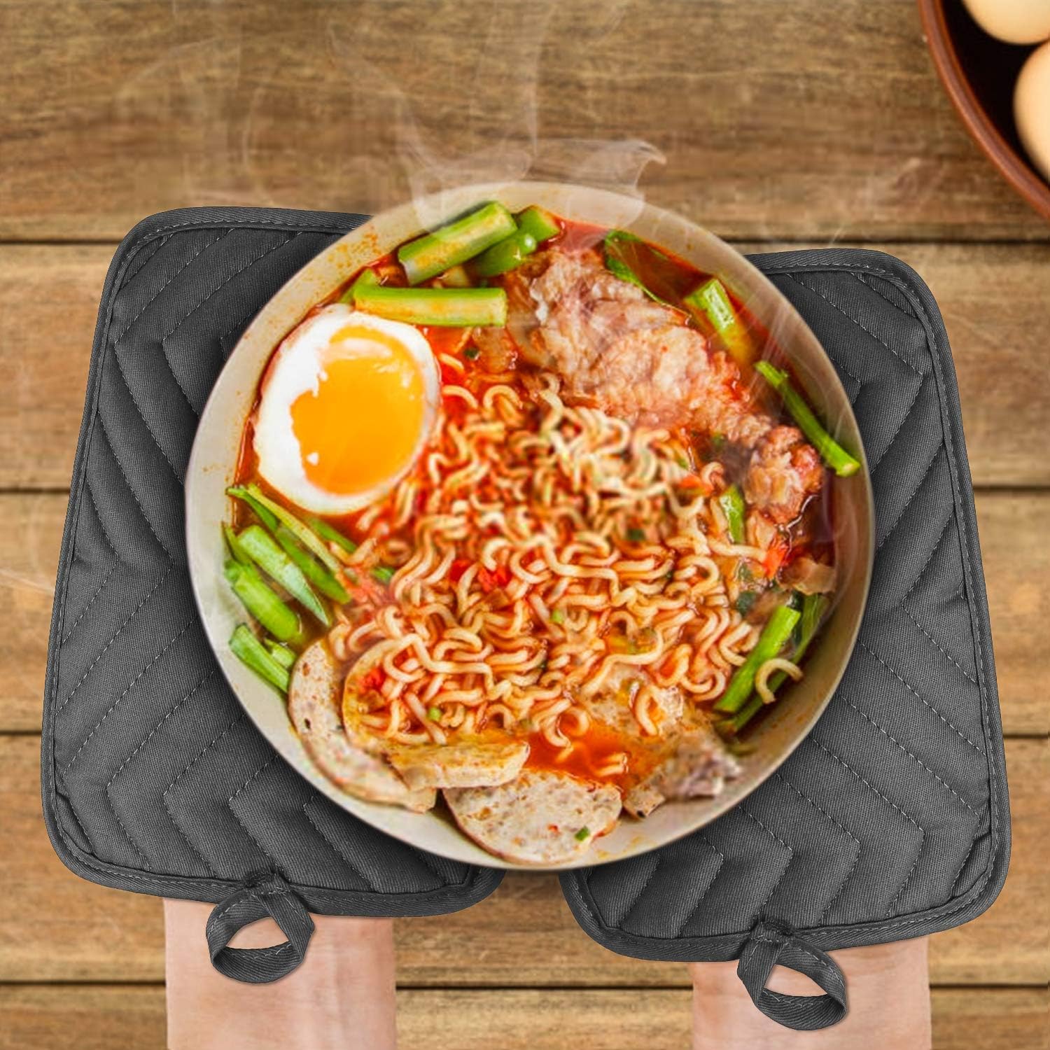 - Convenient for Storage -- These pot holder are soft and can be folded, you can easily put it in the kitchen drawer or hang it wherever you want! (Because the product is new from the factory, such as the smell can be put in an open place to disperse the smell.)