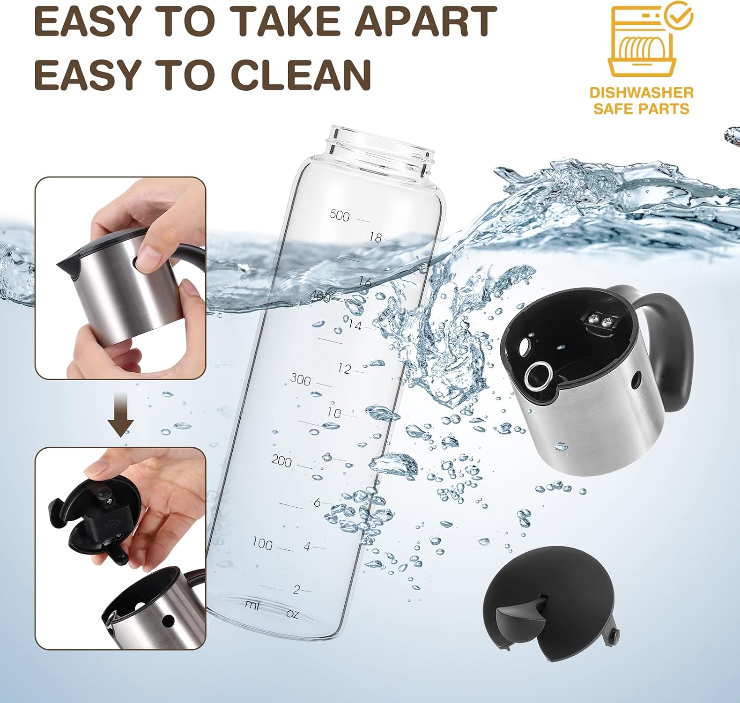 - Easy to Detach and clean - The bird lid of the vinegar dispenser can be detached by pressing the bird's eyes. The whole oil and vinegar dispenser set can use dishwasher or water to clean.
