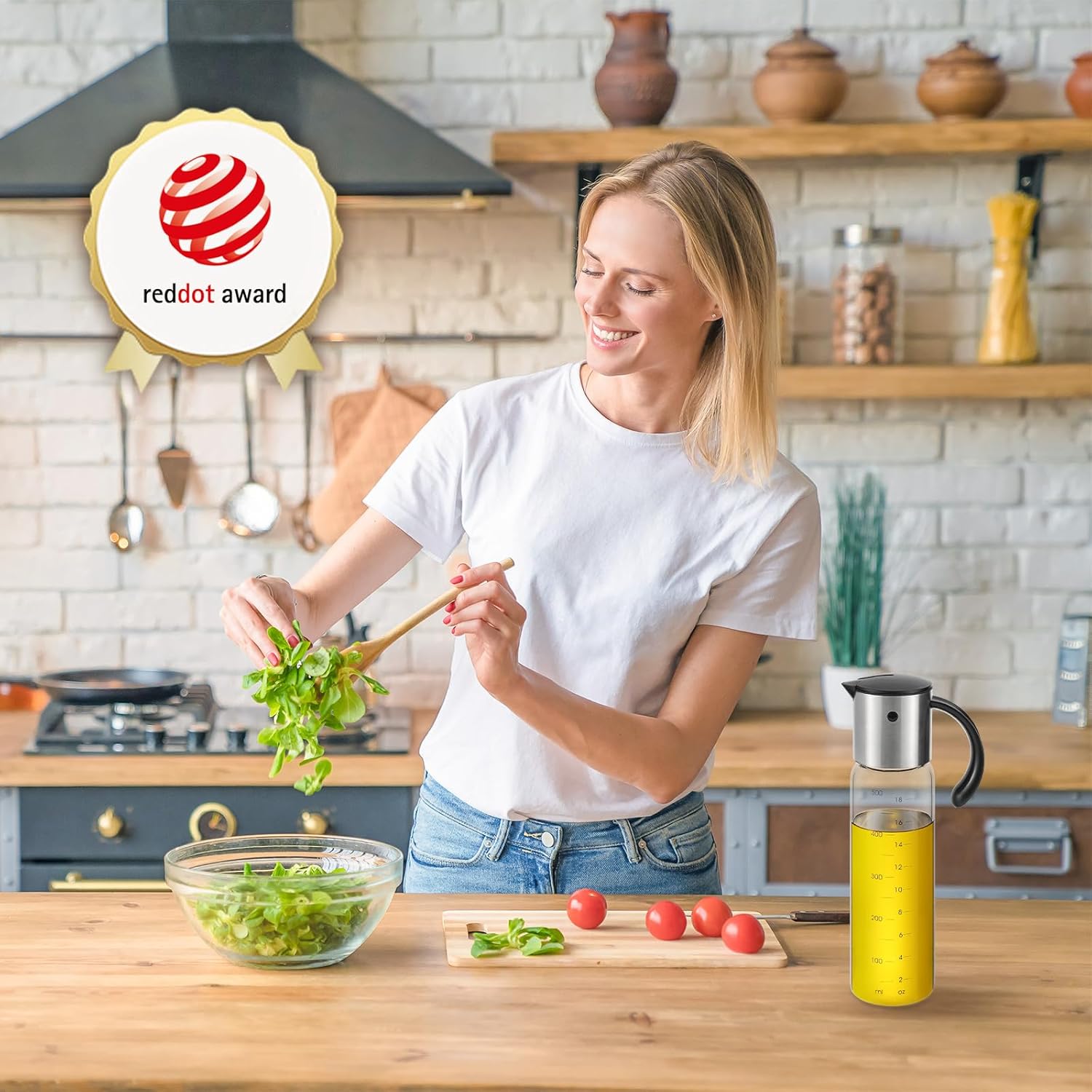 - No-Drip Spout & Leak-Proof Kitchen Bottle - Unique spout with clear measurements labeled on the glass bottle to greatly avoid dripping and you can better control the amount of oil and no worry about over dressing.