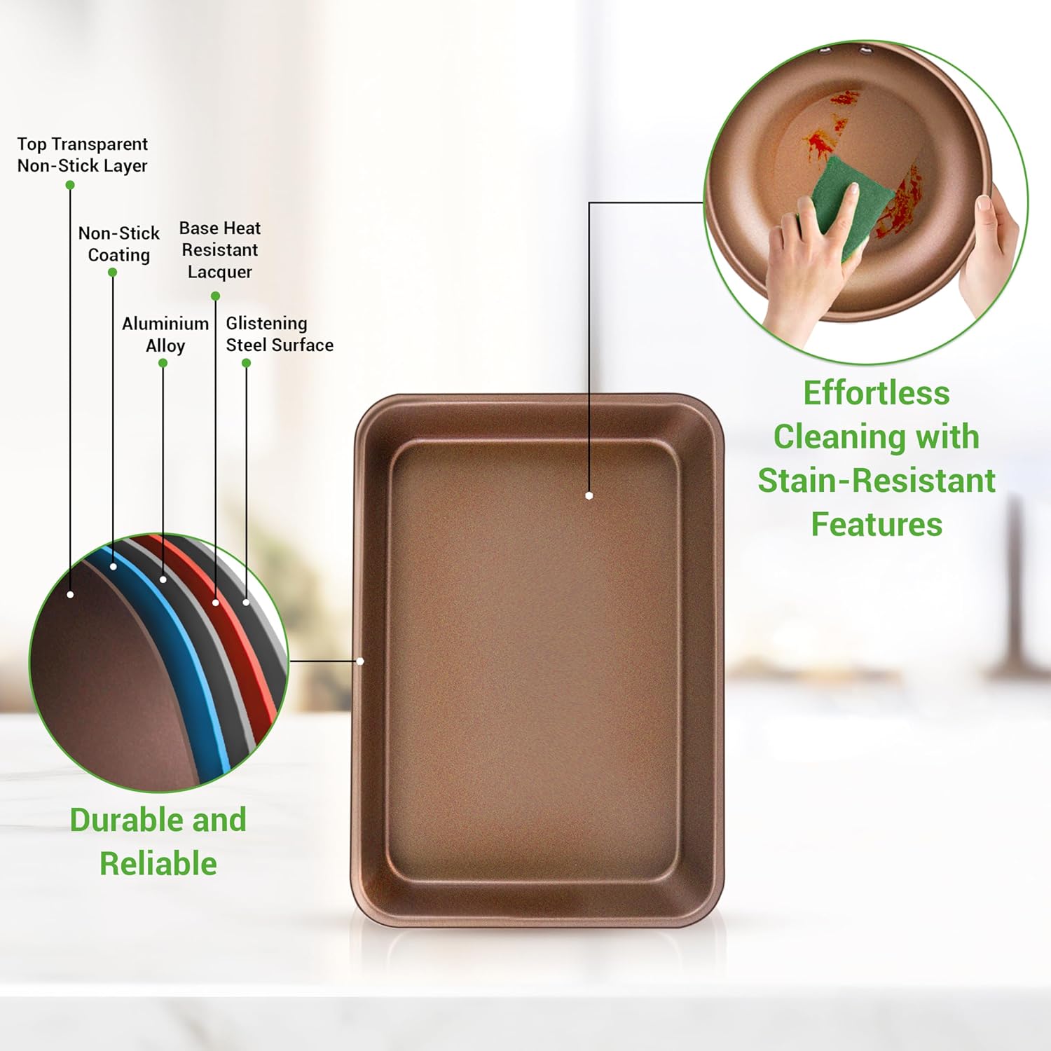- NON-STICK SURFACE: This cookware set boasts a durable, PFOA/PFOS-free non-stick coating, ensuring effortless food release, easy cleaning, and healthier cooking. Its heat-resistant lacquer exterior stands up well to high temperatures.