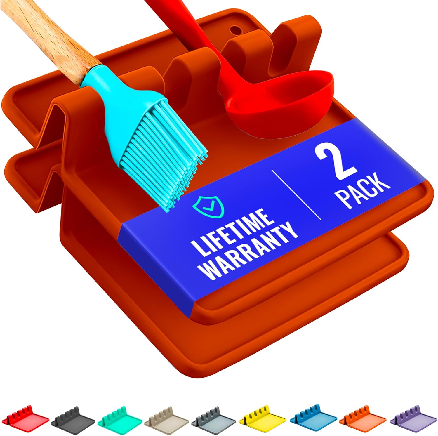 - QUALITY SILICONE TO STAND THE TEST OF TIME: Made from a durable, dishwasher friendly, food grade silicone, our sturdy space friendly spoon rack is the ideal tool to keep counters neat and organized while cooking; The silicone material ensures that food washes off easily, making clean up a breeze with or without a dishwasher; The flexible material ensures that this kitchen spoon rest will hold up to heavy duty usage for years to come without shattering or cracking like most ceramic spoon rests