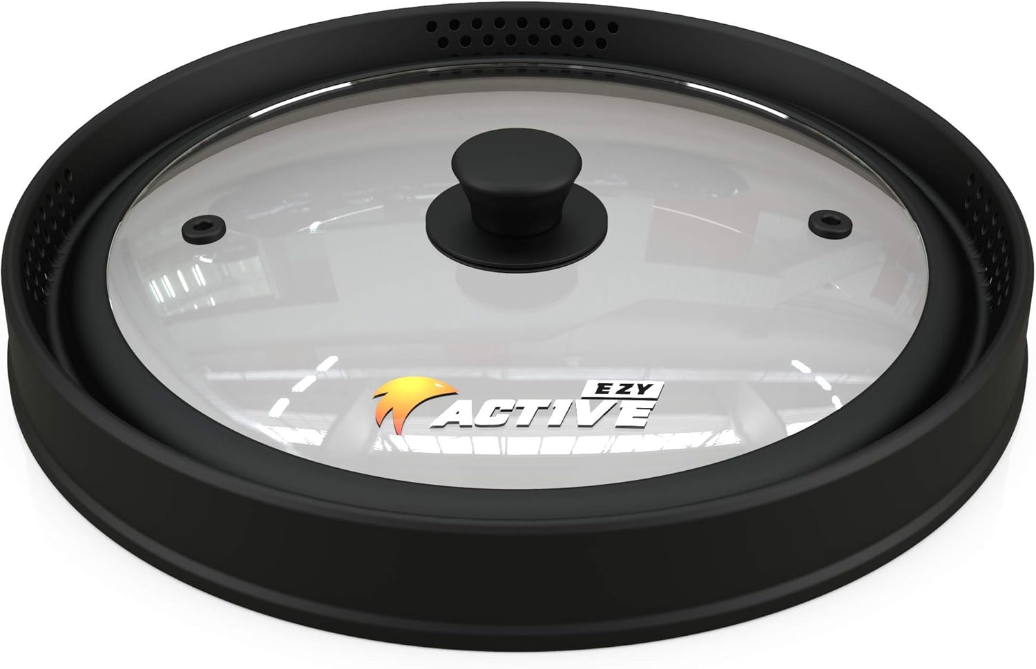 Collapsible Microwave Cover for Food - Silicone and Glass Splatter Guard Lid for 6-12 inch Plates & Bowls, Dishwasher Safe, Heat Resistant, BPA-Free, Black