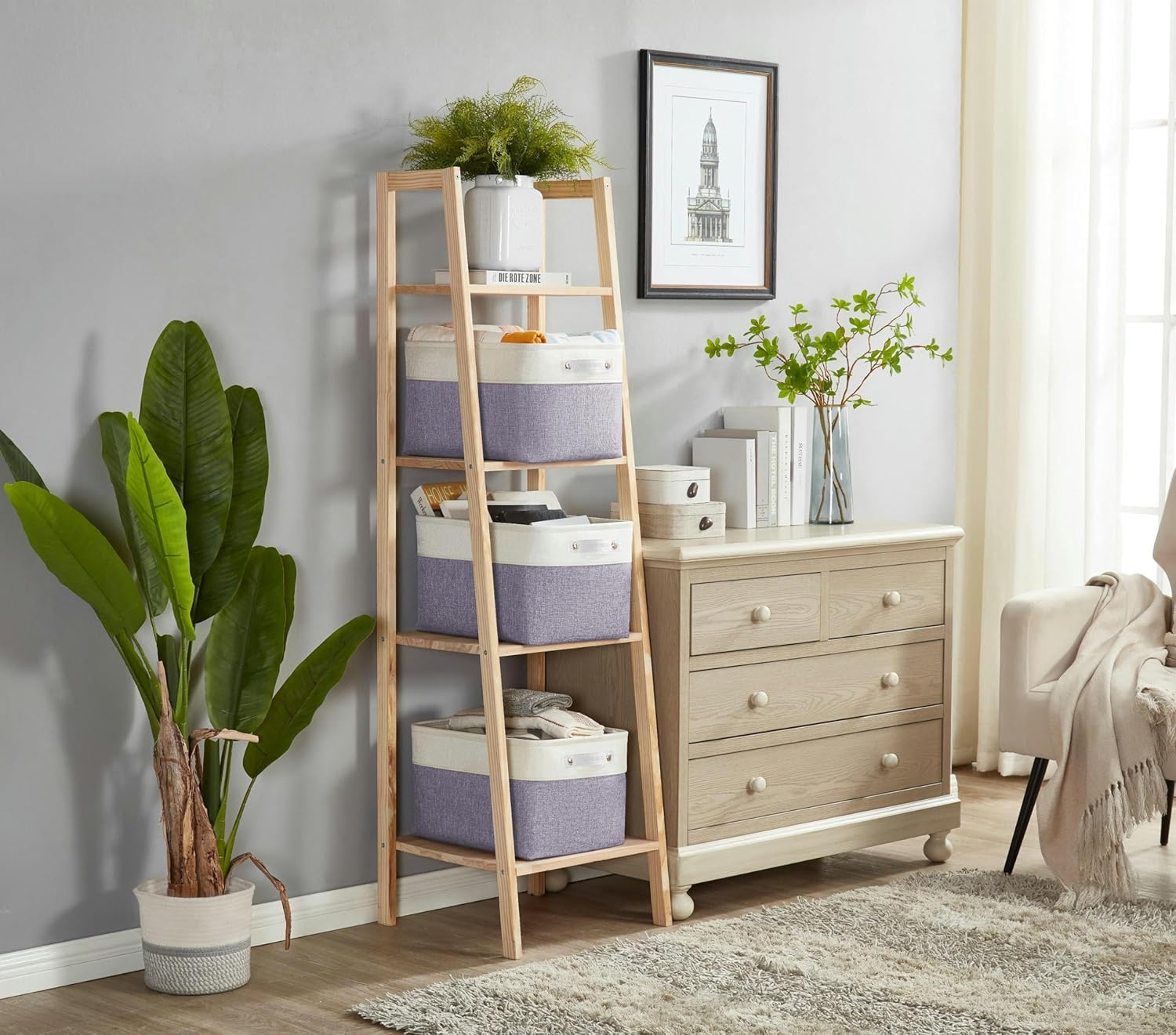 DECOMOMO Storage Baskets for Shelves - Fabric Storage Bins, Linen Closet Organizers and Storage (Purple & White, Large - 3 Pack)