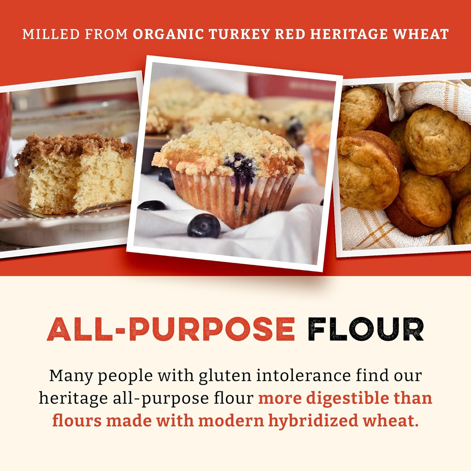 - Organic All Purpose Flour - Glyphosate free flour with no additives or chemicals, this organic unbleached flour all purpose is freshly milled from Turkey Red Heritage Wheat grown and harvested by Sunrise Flour Mill.