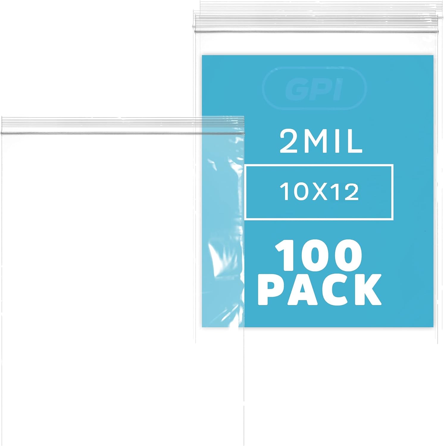 GPI PACK Of 100 , 10"x12" 1 GALLON, CLEAR PLASTIC RECLOSABLE ZIP BAGS,2 mil Thick Poly Baggies With Resealable Zip Top Lock For food, jewelry, medical, and household & office supplies.