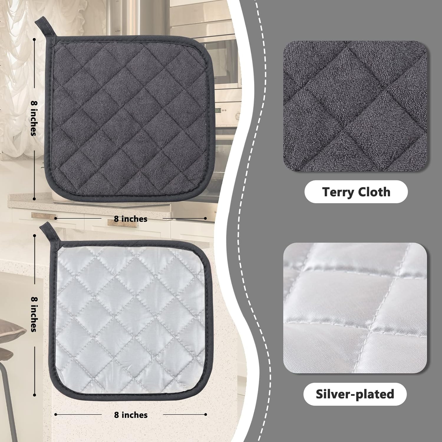 Joyhalo 4 Pack Pot Holders for Kitchen Clearance, Hot Pads for Kitchen, Countertops, Oven Pot Holders Bulk, Potholders Sets for Kitchens Heat Resistant, Grey