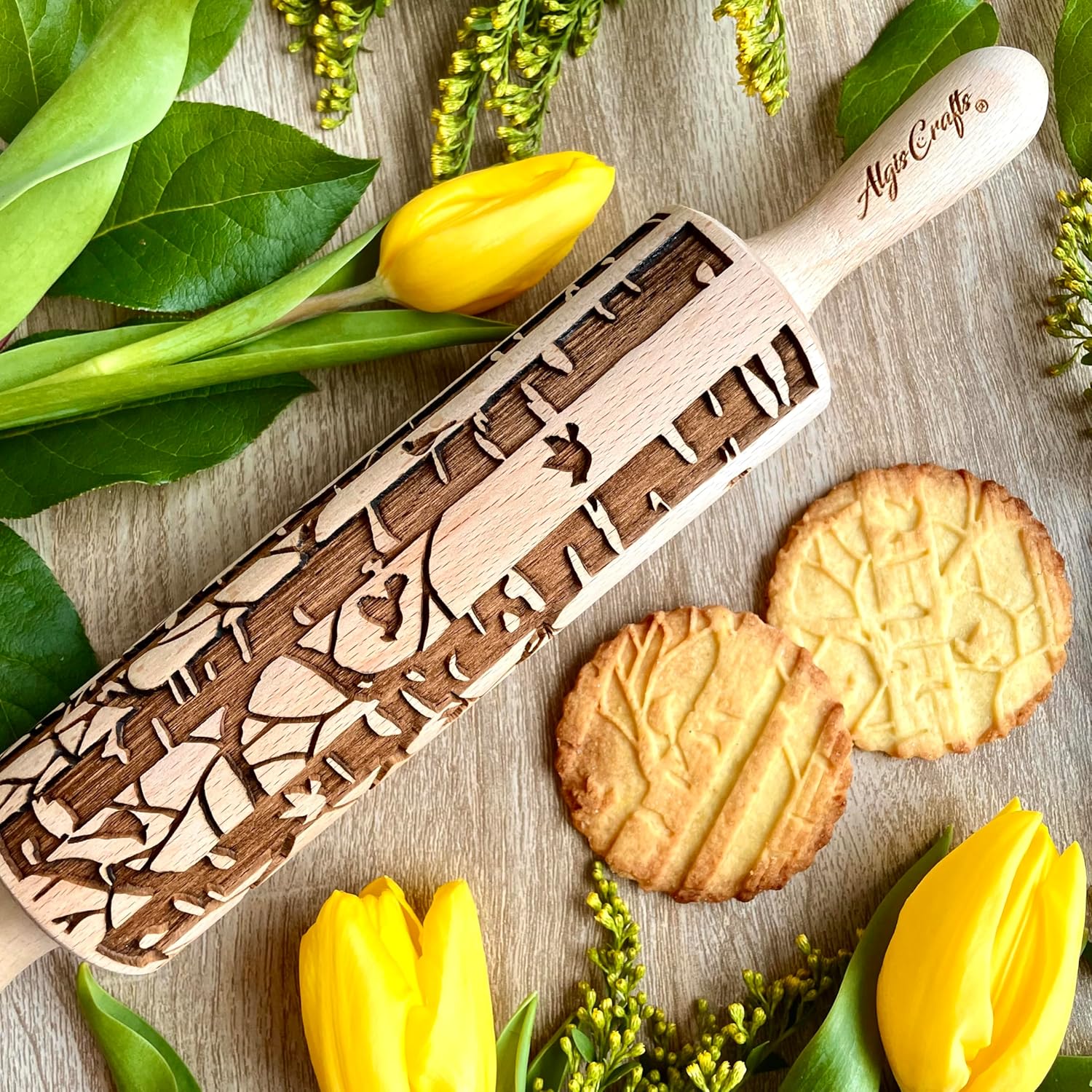 BIRCH embossing rolling pin engraved wooden embossed dough roller for embossed cookies or clay by Algis Crafts