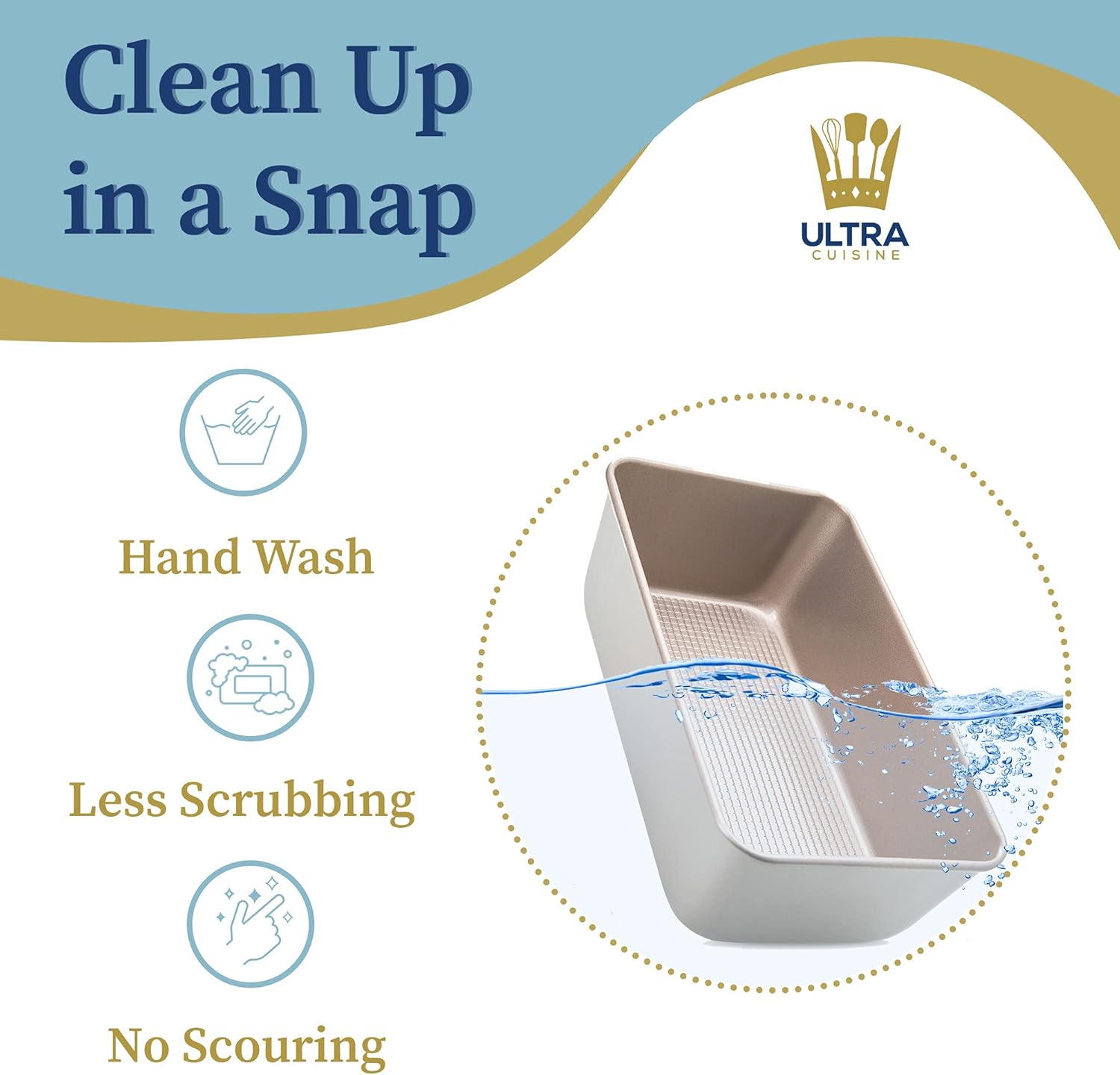 - EASY TO CLEAN: Spend less time scrubbing and more time making memories with friends and family! Made for easy cleanup, hand wash Ultra Cuisine’s loaf bread pan easily without deep scrubbing or scouring. Bake homemade breads, yeast and quick breads, and dessert loaves and then clean up in a snap - use silicone baking mats or parchment paper sheets to make cleanup even easier.