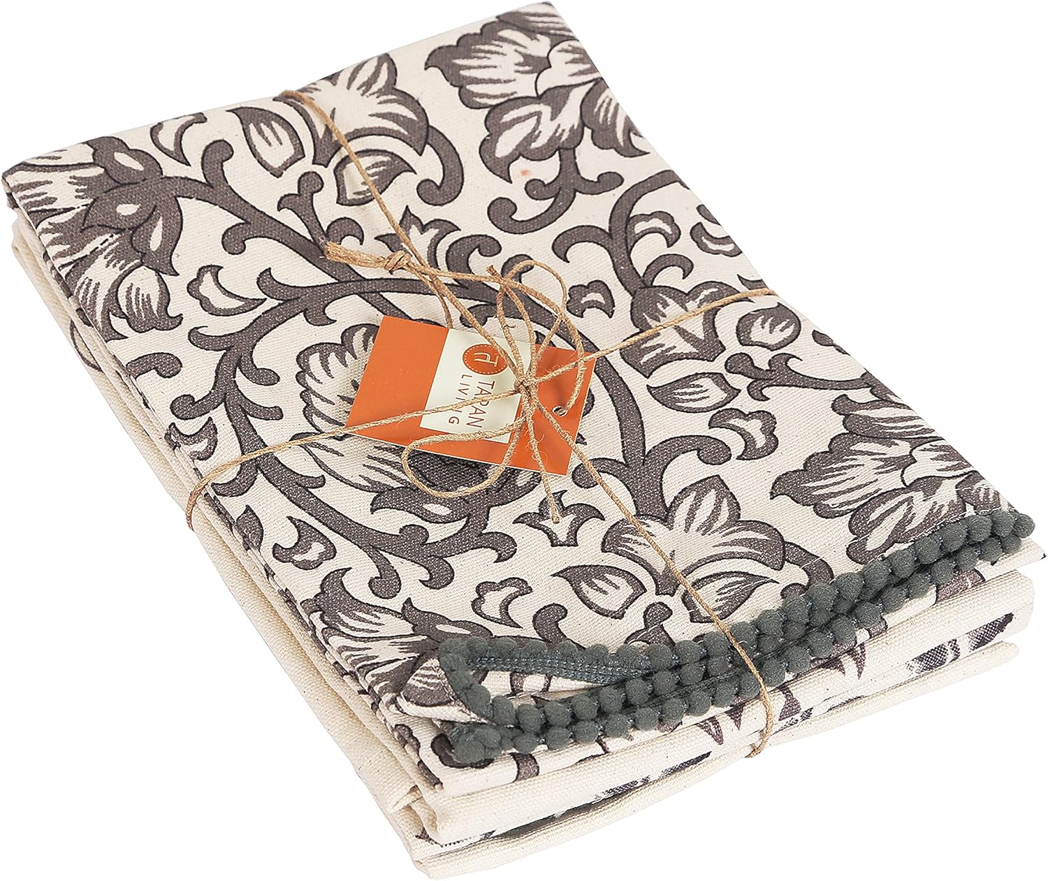 Kitchen Towels Dish Towels for Kitchen- Gray & Beige Tea Towels for Kitchen-Bar Towels for Kitchen-KitchenTowels and dishcloths-Printed Floral 18"x28" Pack of 4