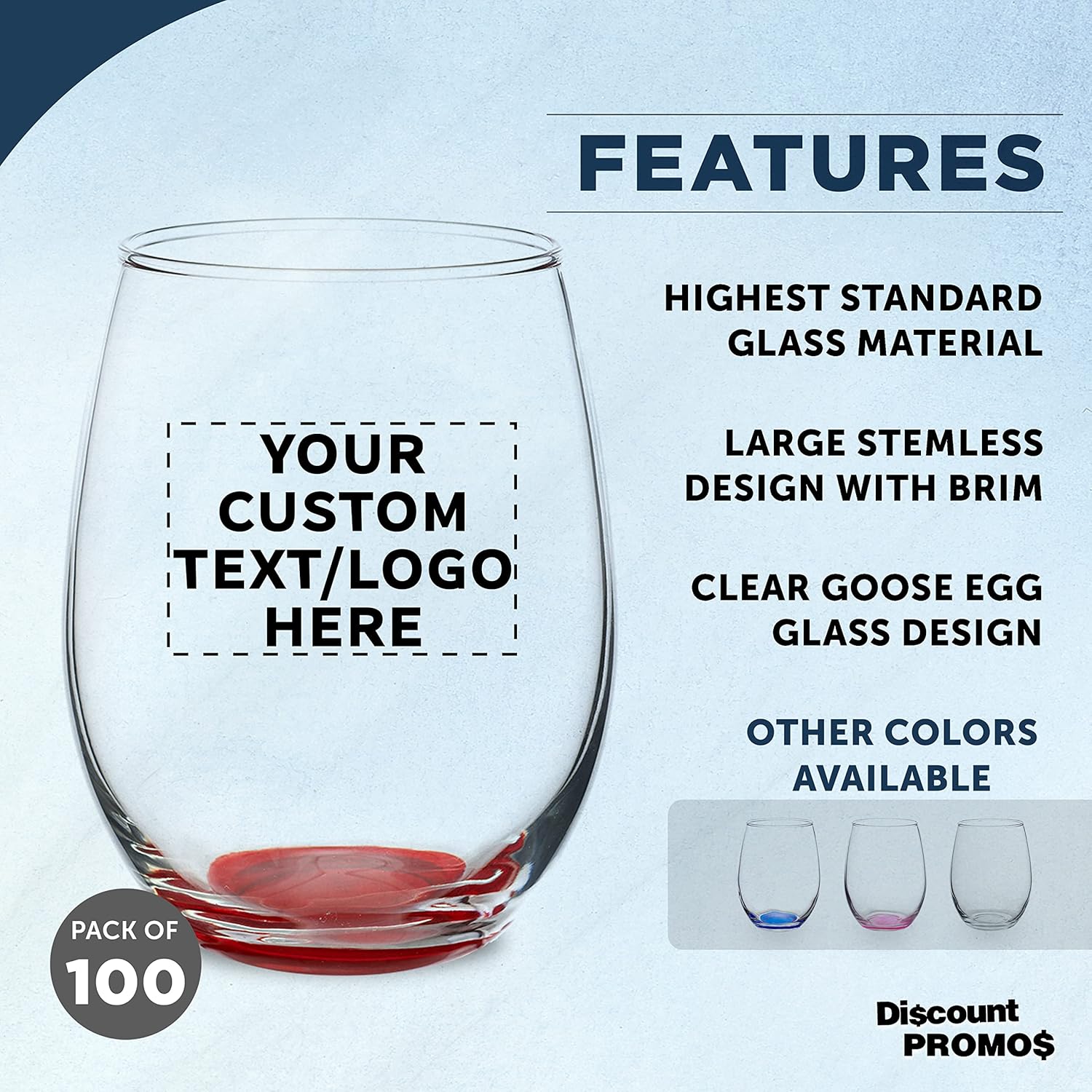 Custom Stemless Wine Glasses in Bulk by ARC Perfection, 15 oz, 100 pack, Personalized Text, Logo, Red or White Wine Glass Set, Red