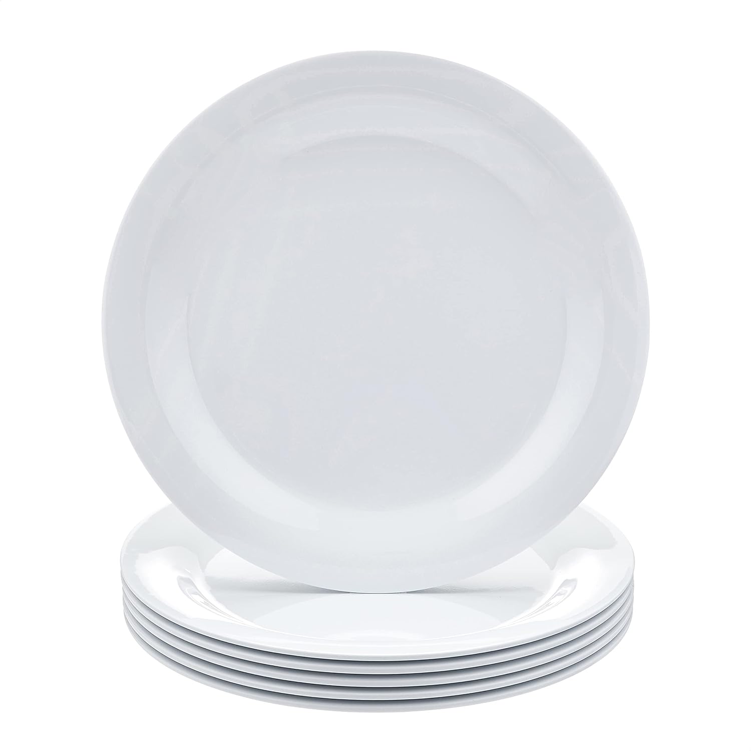 Amazon Basics Melamine (Plastic) Plate, 6 Piece Set, 10.5 in, White (Previously AmazonCommercial brand)