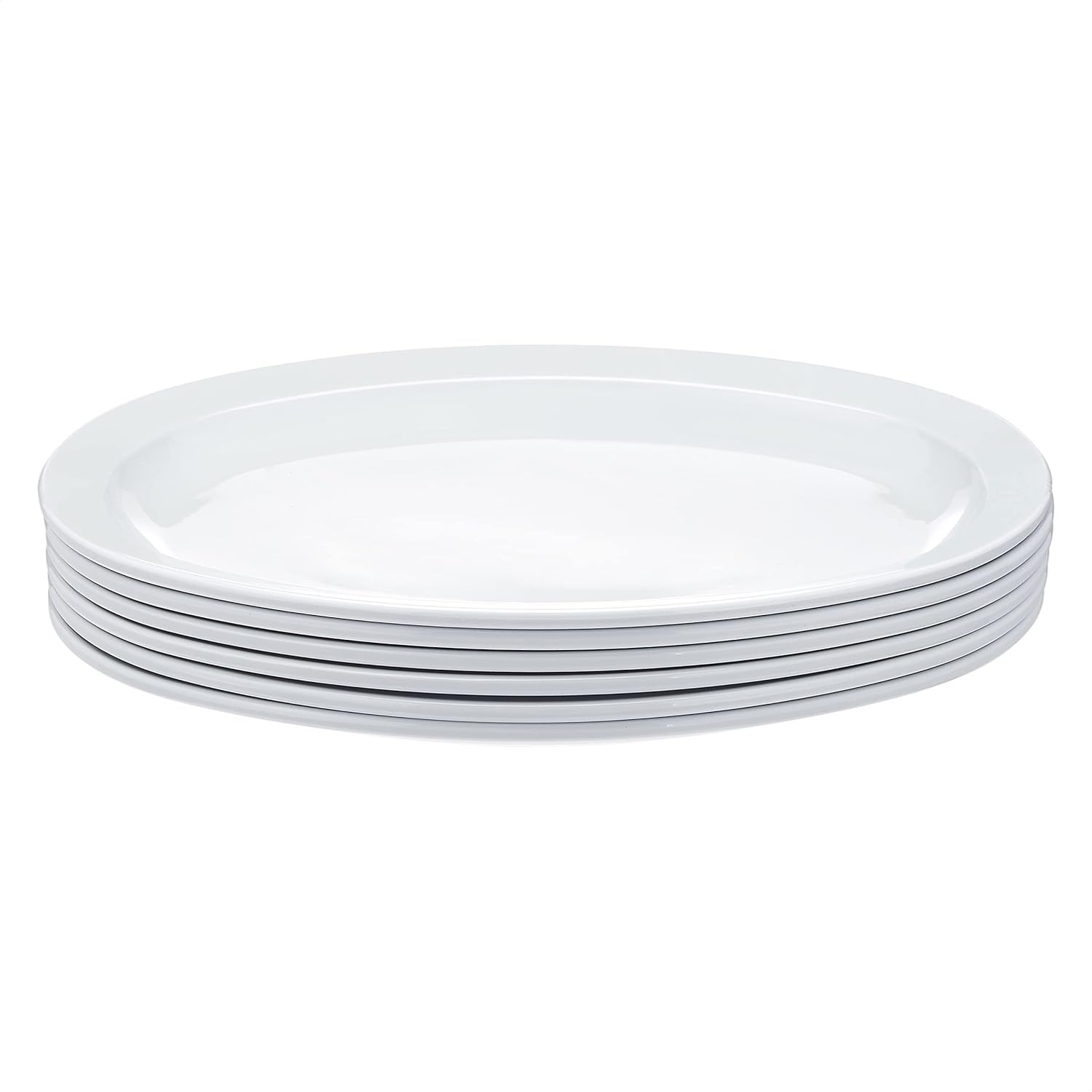 Amazon Basics Melamine (Plastic )Oval Platter Narrow Rim, 6 Piece Set, 13 in x 9.75 in, White (Previously AmazonCommercial brand)