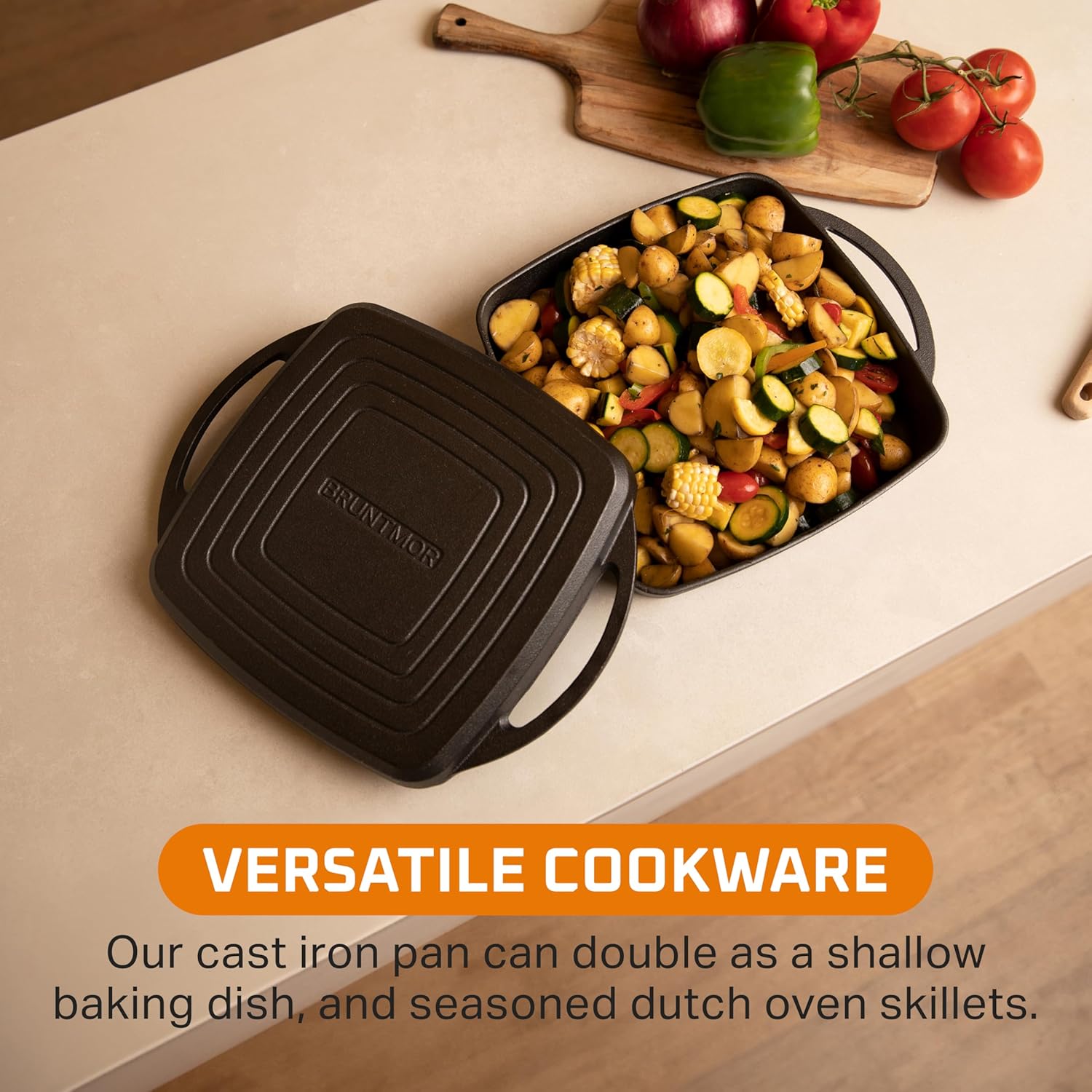 - Versatile Cookware: Use as a cast iron dutch oven or a shallow baking dish for roasting, braising, grilling, and making stews or sauces with this multi-functional cast iron pan and grill lid combo