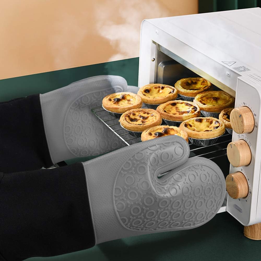 sungwoo Extra Long Silicone Oven Mitts, Heat Resistant Oven Gloves with Quilted Liner Non-Slip Textured Grip Perfect for BBQ, Baking, Cooking and Grilling - 1 Pair 14.6 Inch Grey & Black