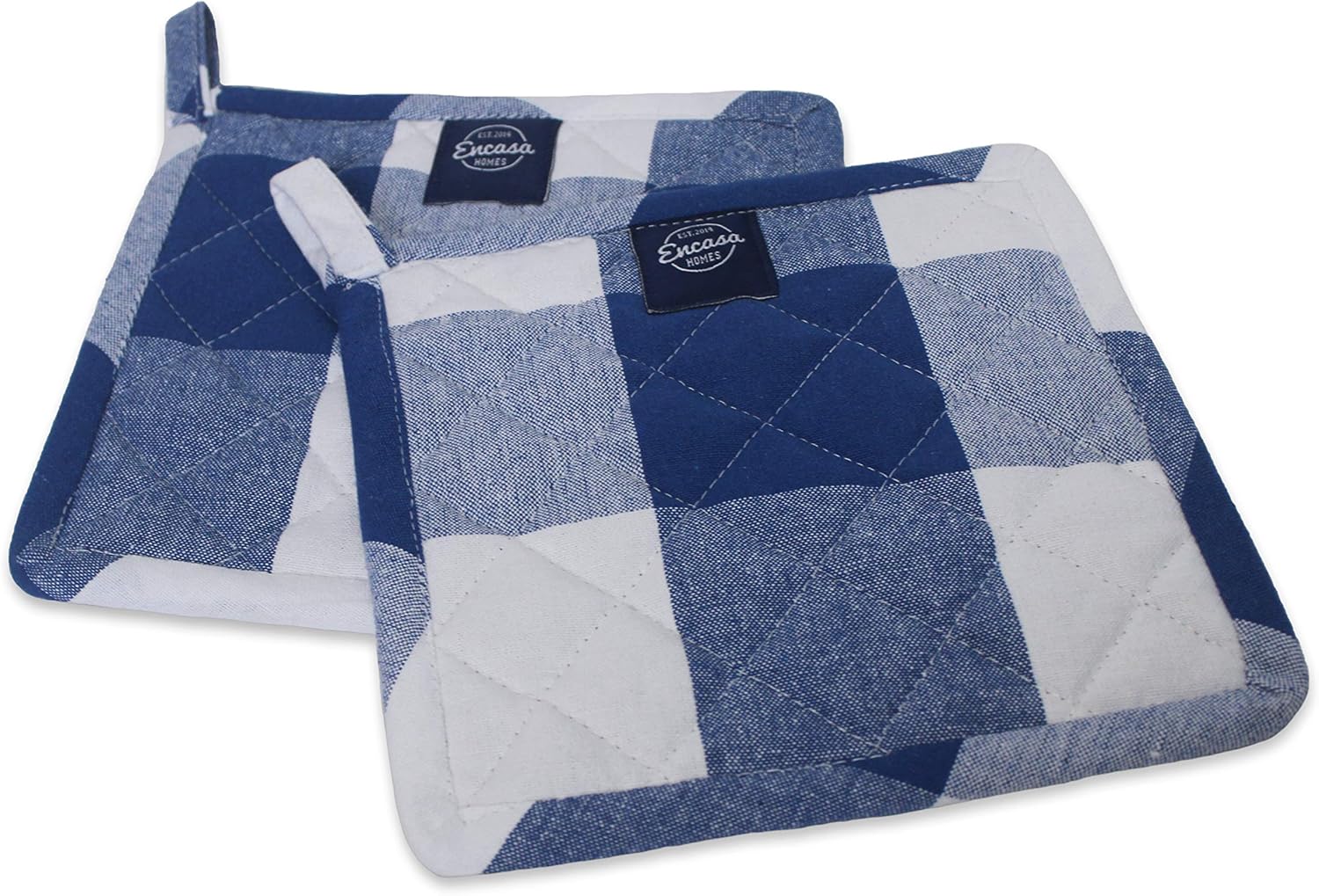Encasa Homes 8 inches Oven Microwave Potholders (2 pc Set) for Kitchen Cooking & Baking - Heat Resistant, Thick & Safe, Protection of Hands from Hot Utensils - Buffalo Blue Checks