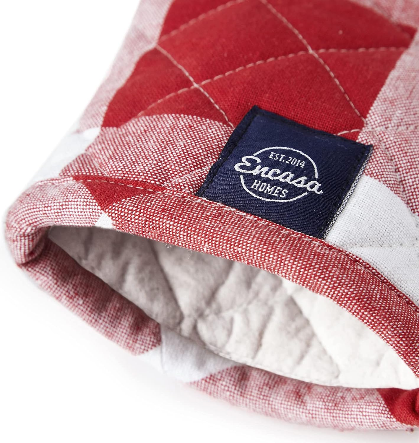 Encasa XO Long 12"x7" Oven Microwave Hand Gloves Mitts (2 pc Set) for Kitchen Cooking & Baking - Heat Resistant, Thick & Safe, Protection of Hands from Hot Utensils - Buffalo Red Checks