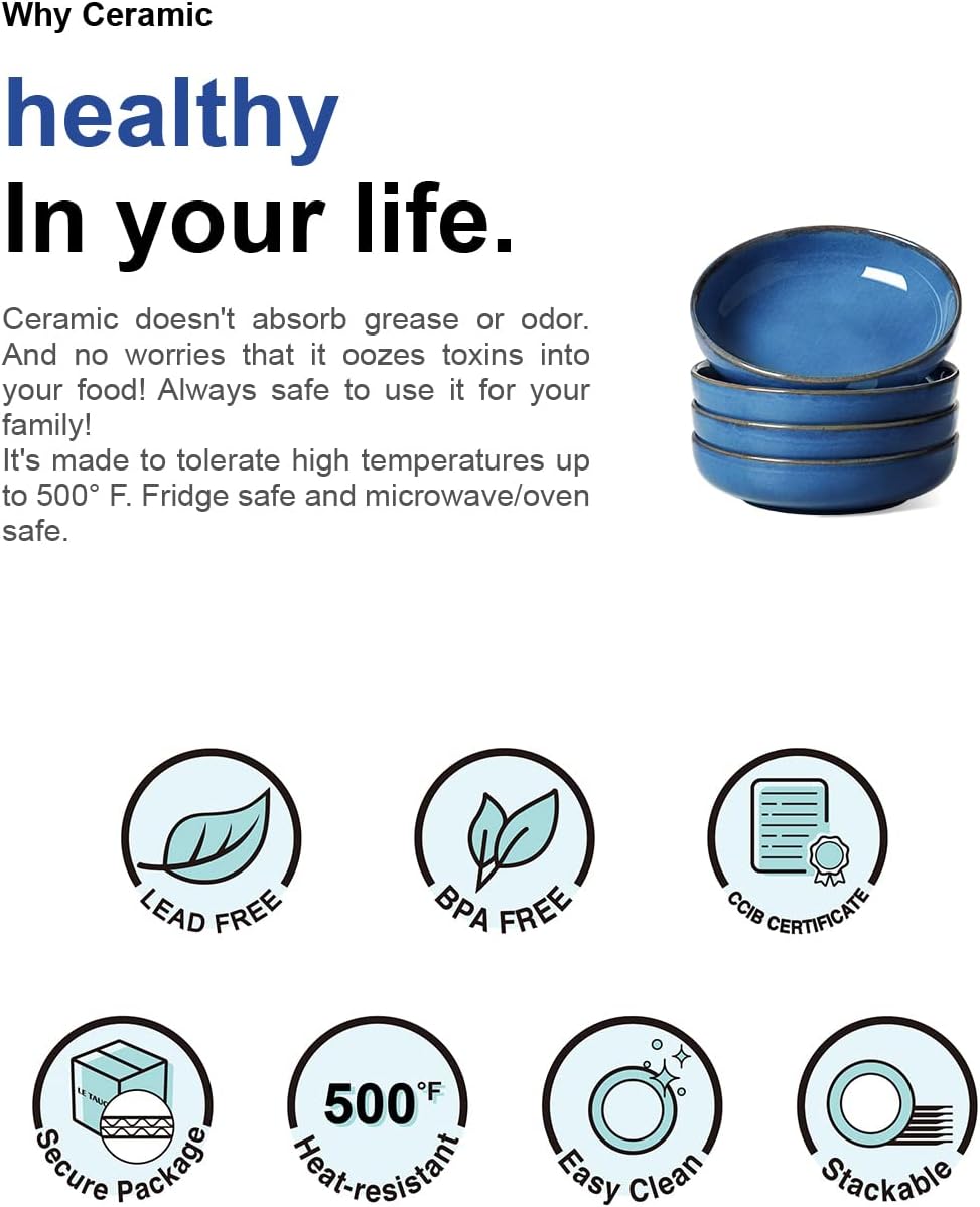 LE TAUCI Pasta Bowls 45 Ounce, Ceramic Salad Bowl, Large Serving Bowl Set - Set of 4, Ceylon Blue