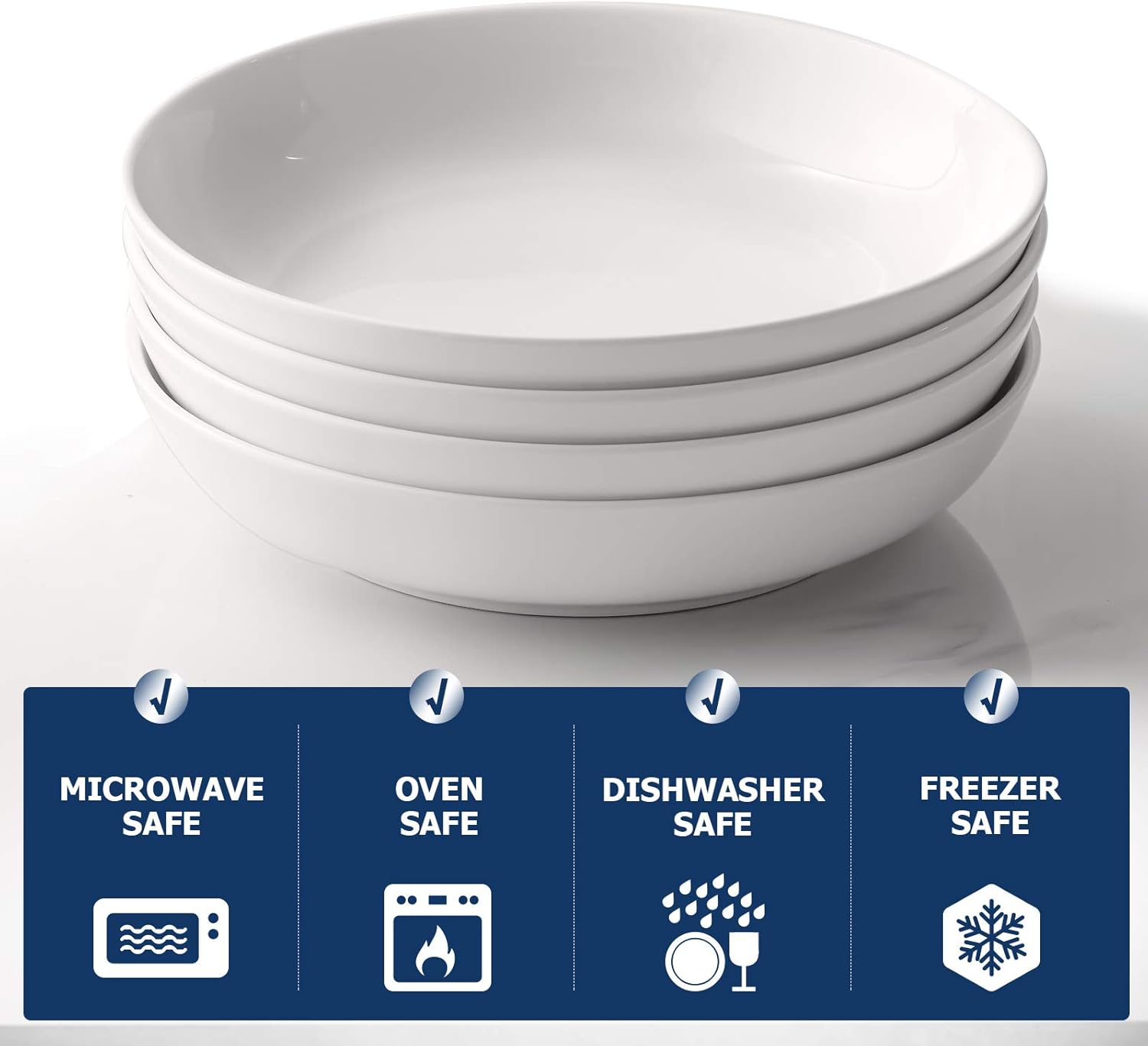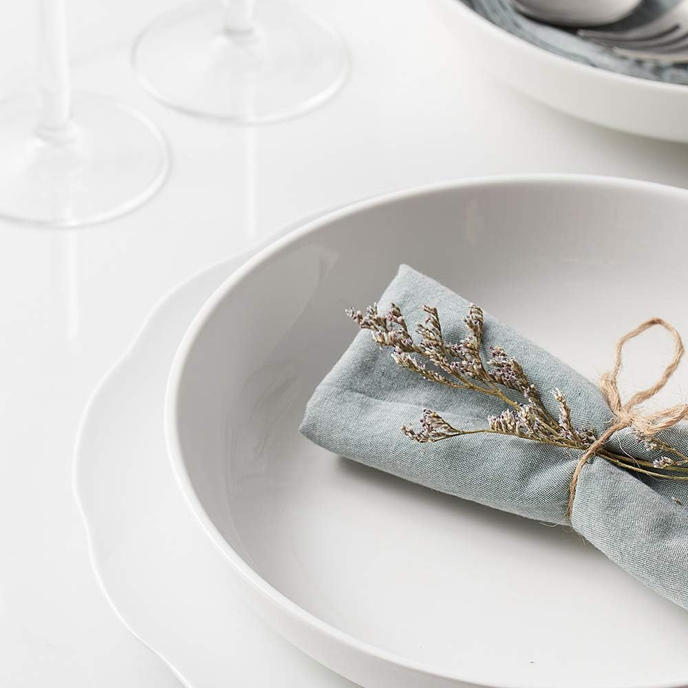 Y YHY Pasta Bowls 32oz, Ceramic Large Salad Serving Bowls, White Pasta Bowls Set, Shallow Soup Bowl Set of 4, Microwave & Dishwasher Safe