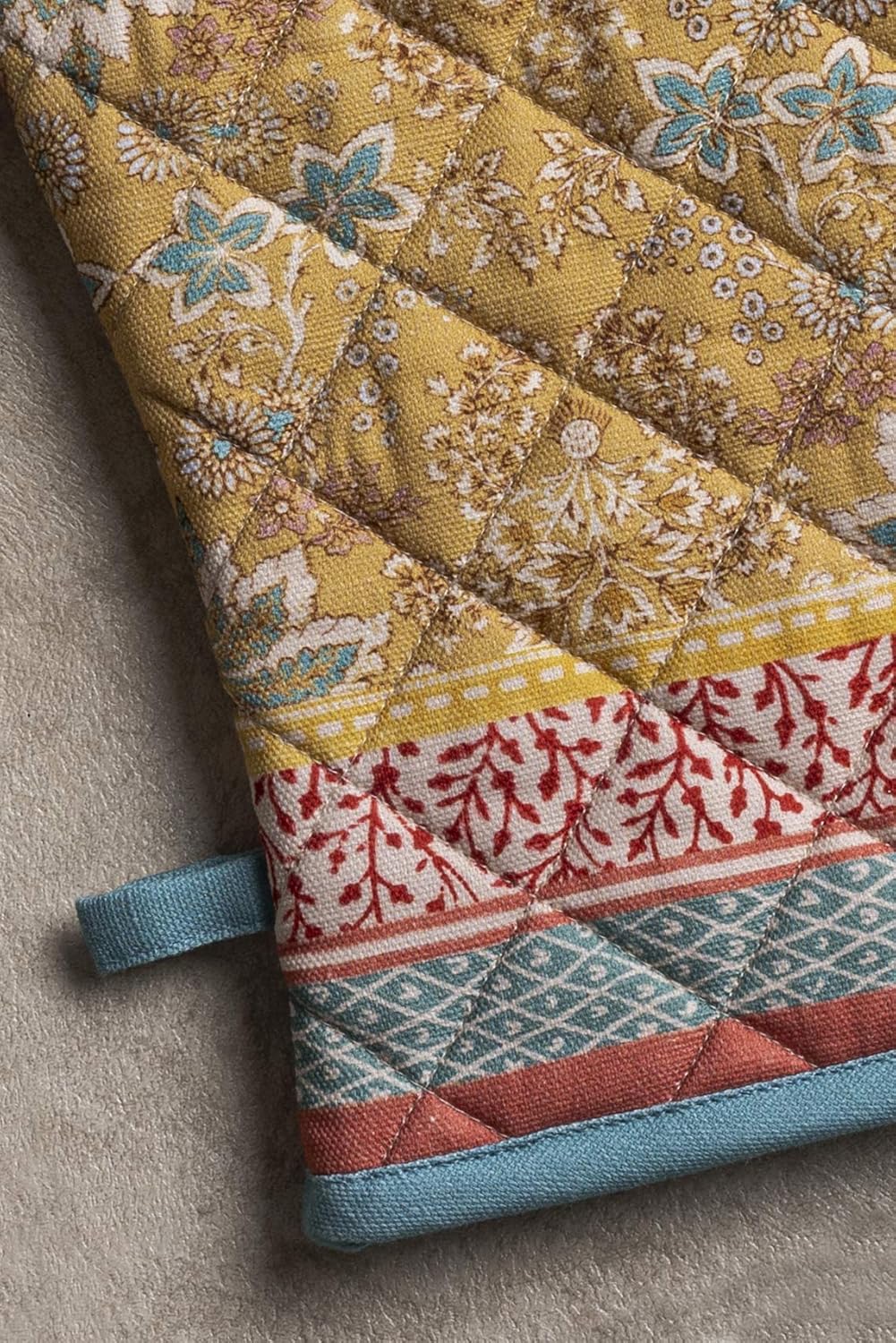 - Package includes: Maison d’Hermine oven mitt measures 7.5" x 13", offering excellent protection while baking or cooking. Made from 100% quilted cotton for superior grip and comfort. Designed in Europe and Made in India with high-quality craftsmanship