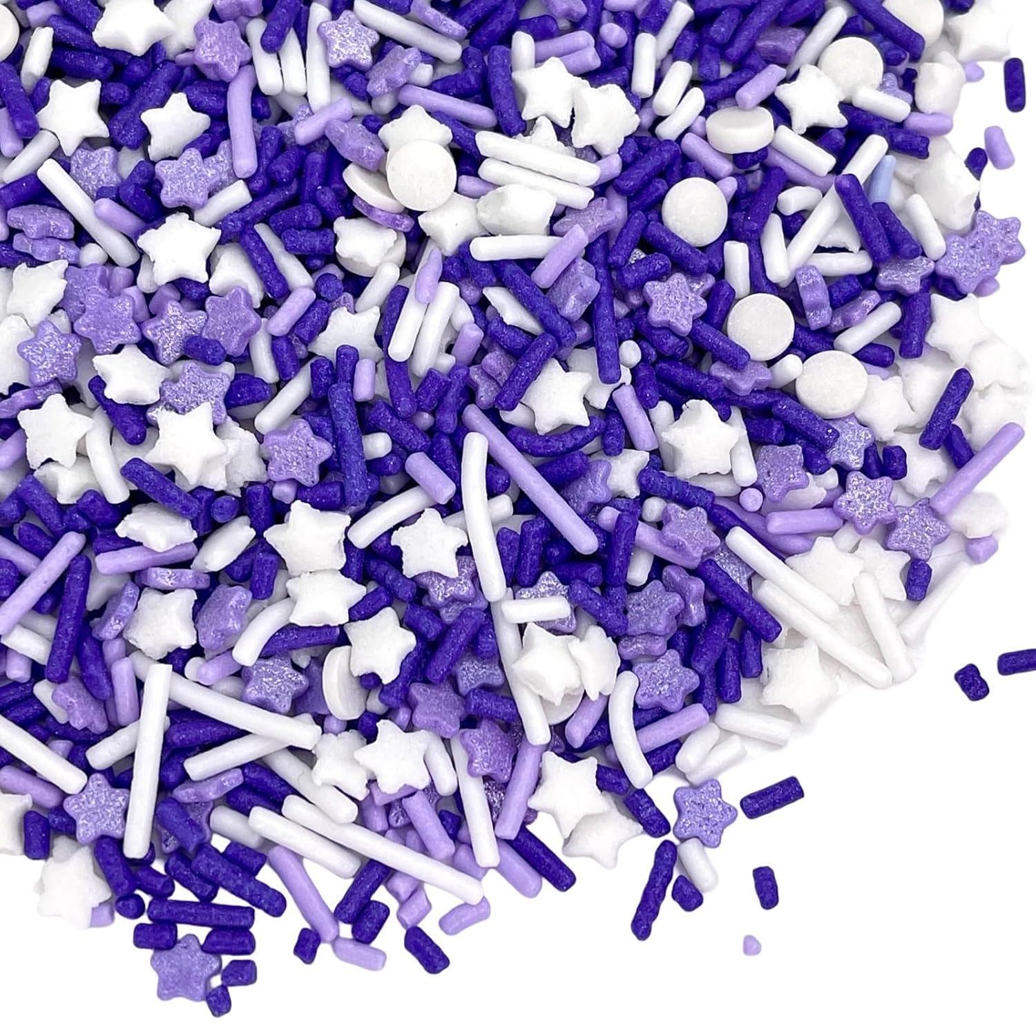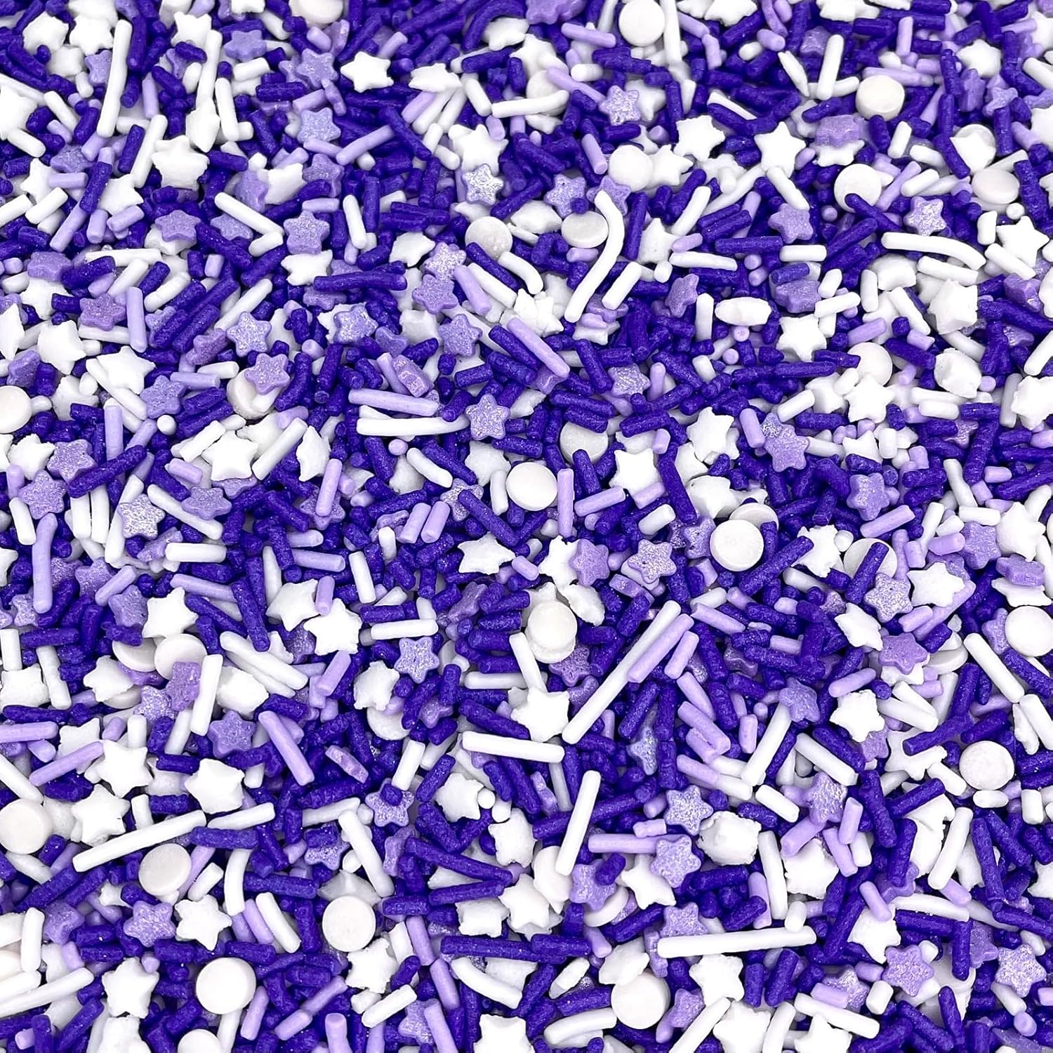 - PURPLE AND SILVER THEMED SPRINKLES: Create a sweet and cheerful party or celebration with our four ounces of bright, festive, beautiful purple and silver-themed sprinkles. These metallic toppings are a pack of sprinkle mix of jimmies, nonpareils, sugar pearls, and confetti sprinkles that creates a fun and positive atmosphere for your occasions.