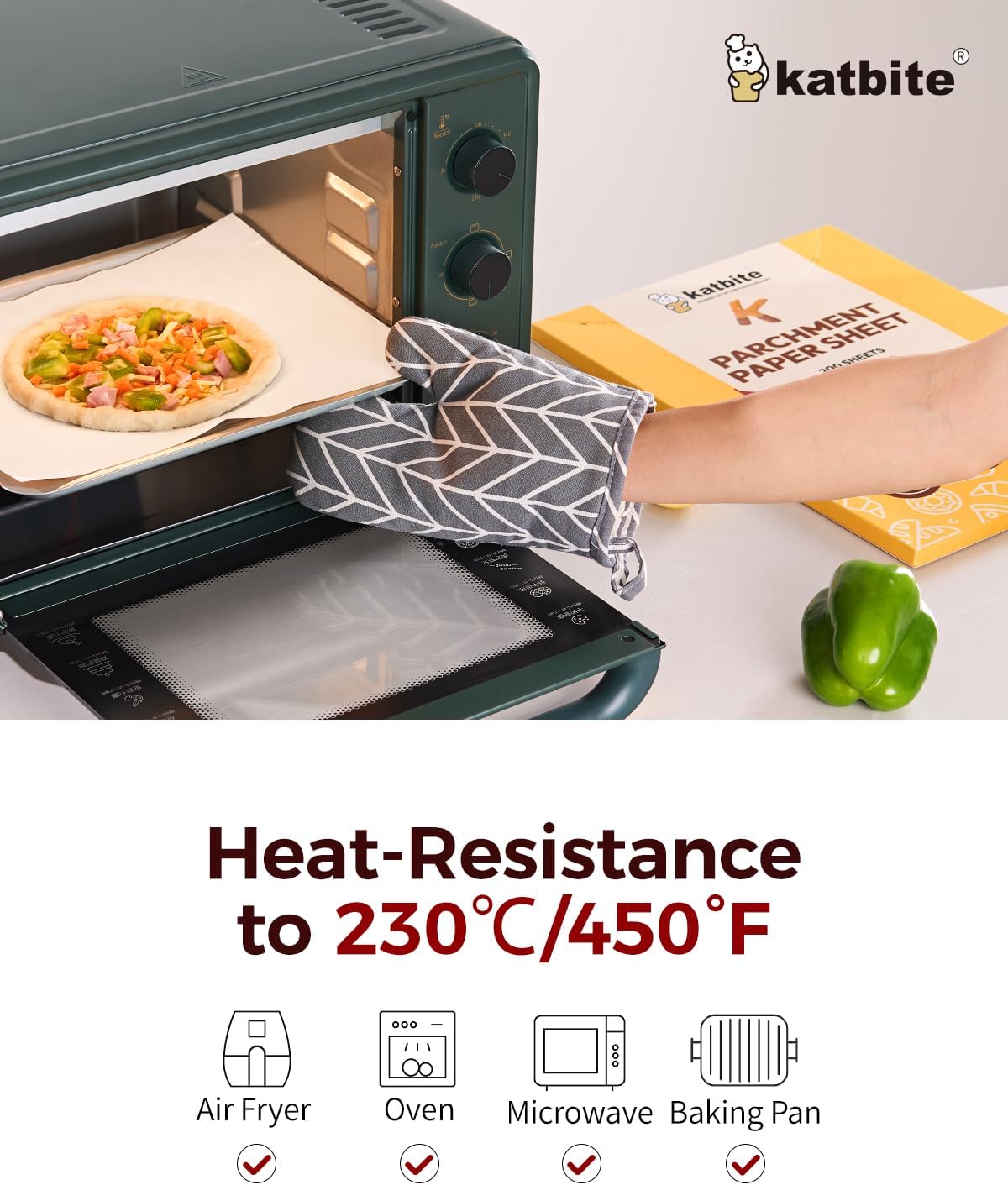 - OVEN & MICROWAVE SAFE - Perfect for baking cakes, pizza, cookies and more. Katbite parchment paper sheets will take the hassle out of your baking, guaranteed! Pre-cut parchment paper pop up half sheets, just take out then directly to use, no need cut, convenient and efficient.