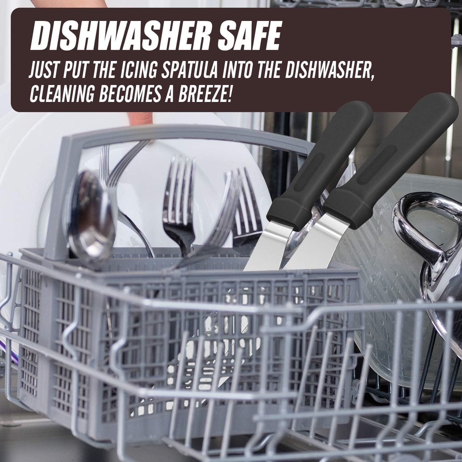 - 【DISHWASHER SAFE】Walfos all the angled spatulas are made of food-grade 430 stainless steel so that they can be safely placed in the dishwasher like a dish. Putting it on the top of the dishwasher will achieve better results.