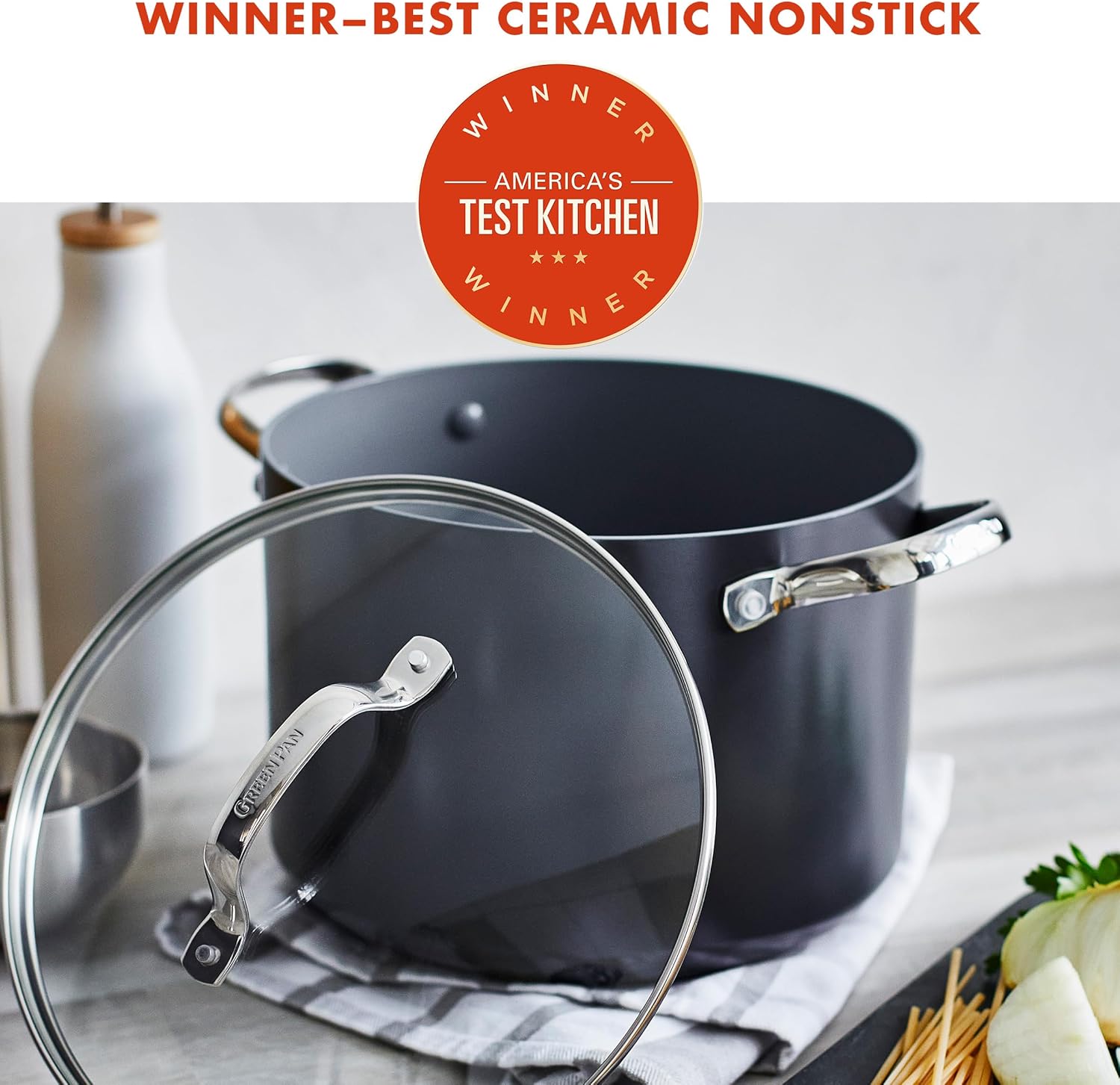 - CUTTING-EDGE CERAMIC NONSTICK: Infused with diamonds, GreenPan's metal utensil safe ceramic nonstick offers remarkable durability, balanced heating, and effortless cleanup.