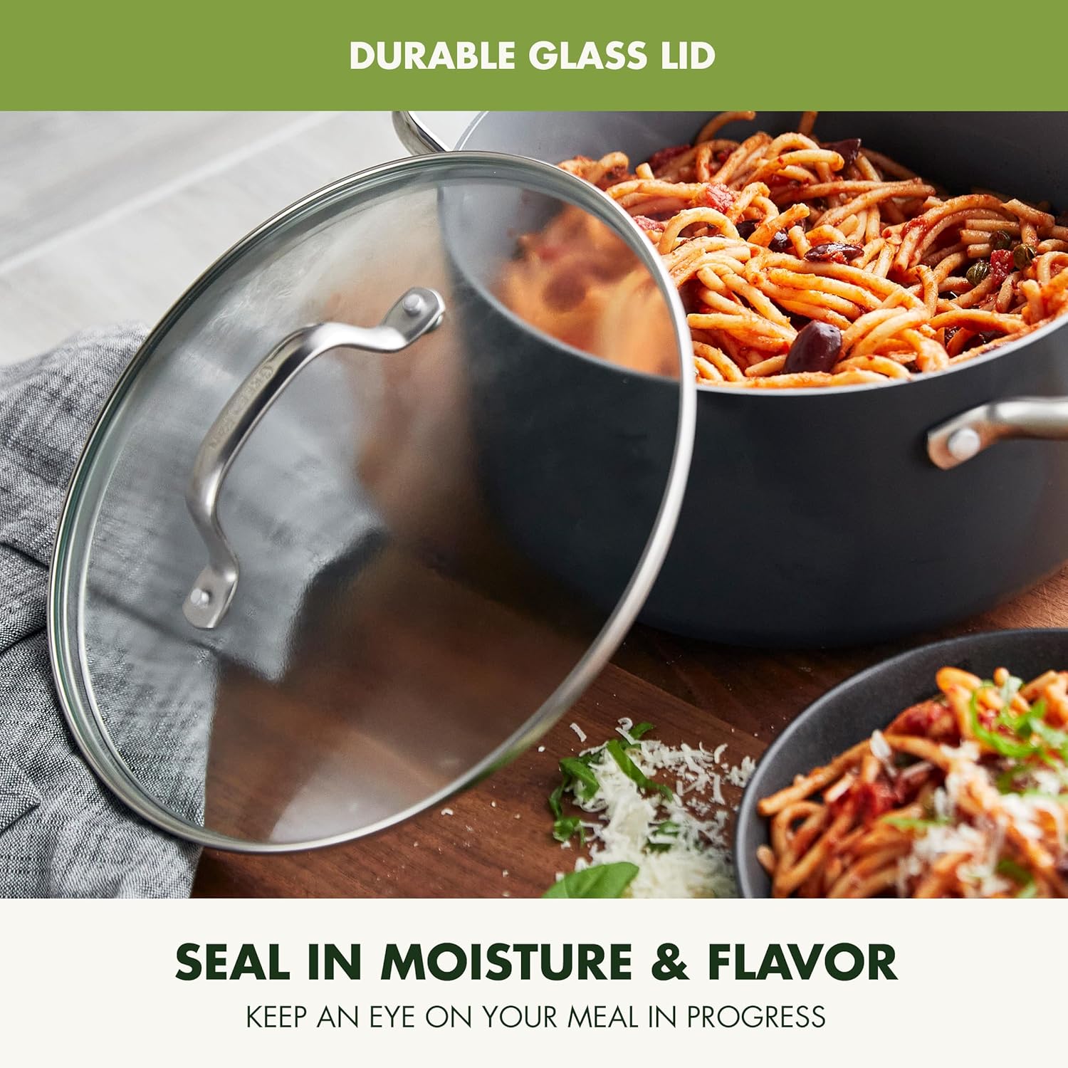 GreenPan Valencia Pro Hard Anodized Healthy Ceramic Nonstick 5QT Stock Pot with Lid, PFAS-Free, Induction, Dishwasher Safe, Oven Safe, Gray