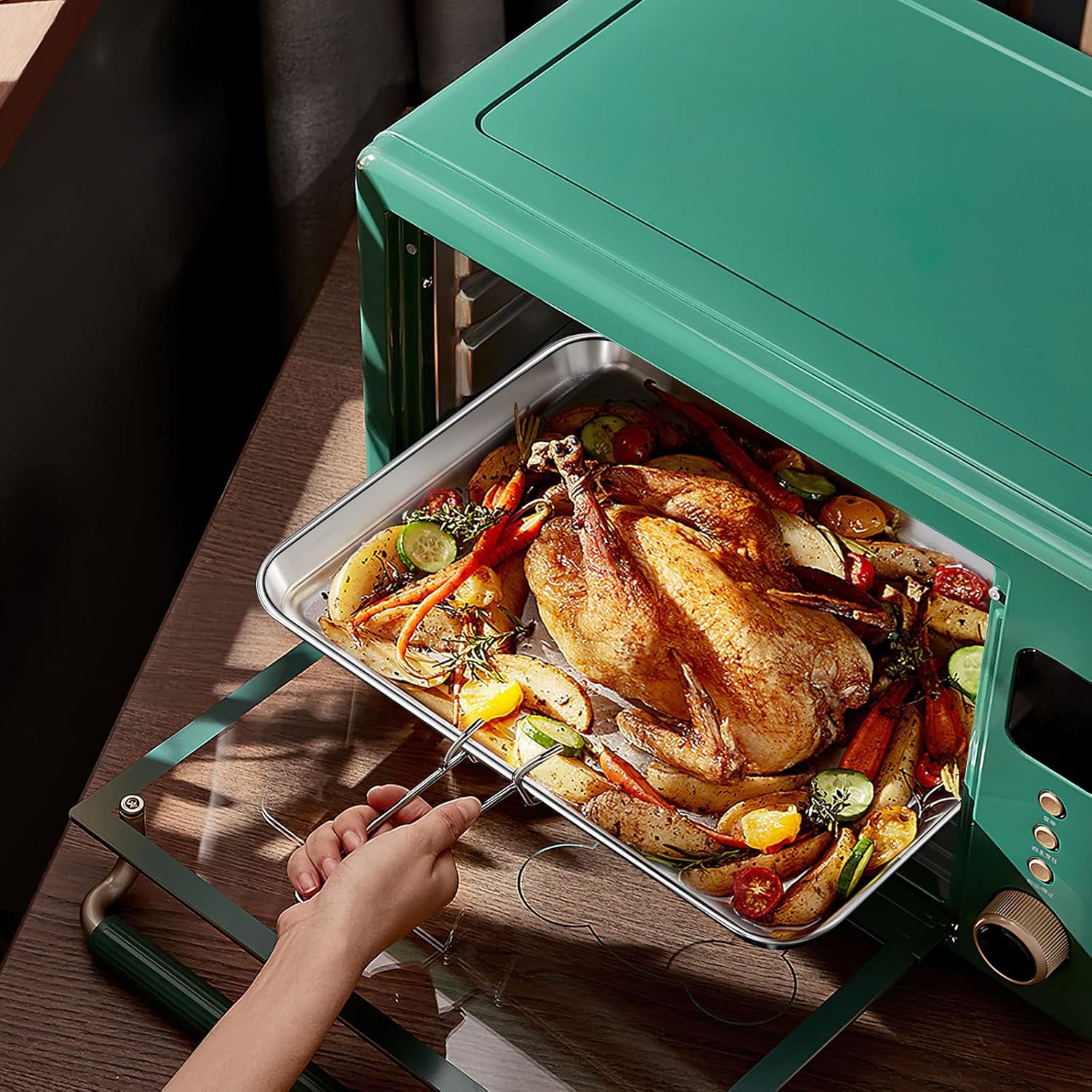 - 🍦 [ADVANCED CRAFT] Baking trays with smooth rolled edge and round corner without rough spot for comfortably hold and transfer. 1-inch deep rim avoid food juice flowing everywhere, keep your oven neat. Shiny and attractive mirror finished surface provides effortless release of baked goods. Both the cookie sheets and wire racks are easily clean even wash by hand, dishwasher safe making both cooking and clean-up a breeze!