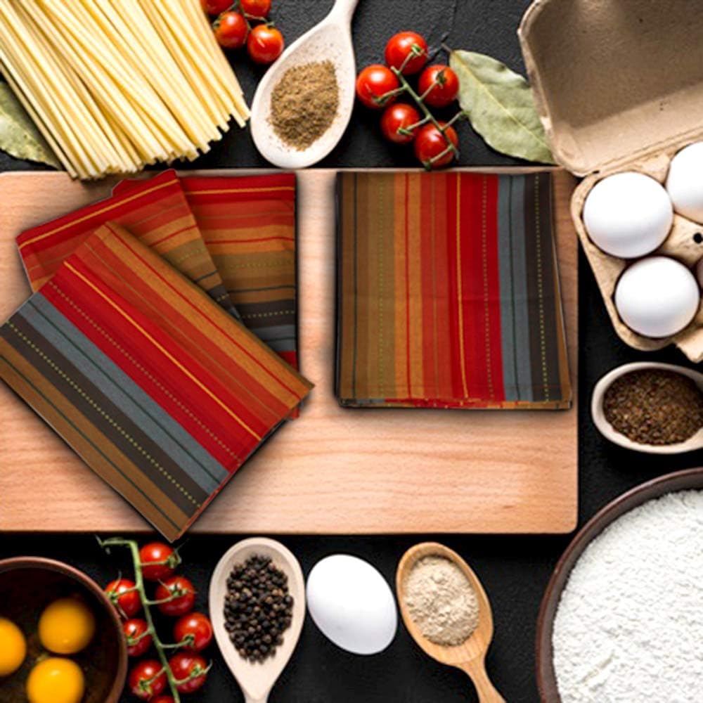 Urban Villa Kitchen Towels, Cuisine Stripes,Premium Quality,100% Cotton Dish Towels,Mitered Corners,Ultra Soft (Size: 20X30 Inch), Red Multi, Highly Absorbent Bar Towels & Tea Towels - (Set of 3)