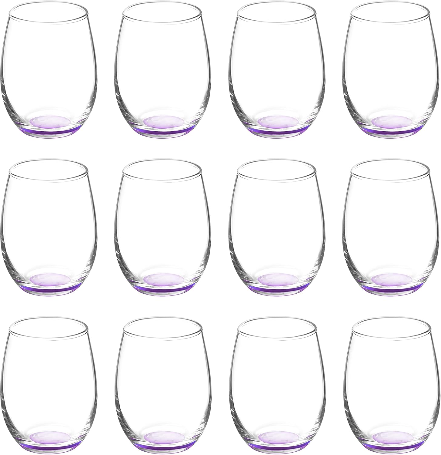 DISCOUNT PROMOS Stemless Wine Glasses by ARC 5.5 oz. Set of 12, Bulk Pack - Perfect for Hotel, Bar, Restaurant or Lounge - Purple