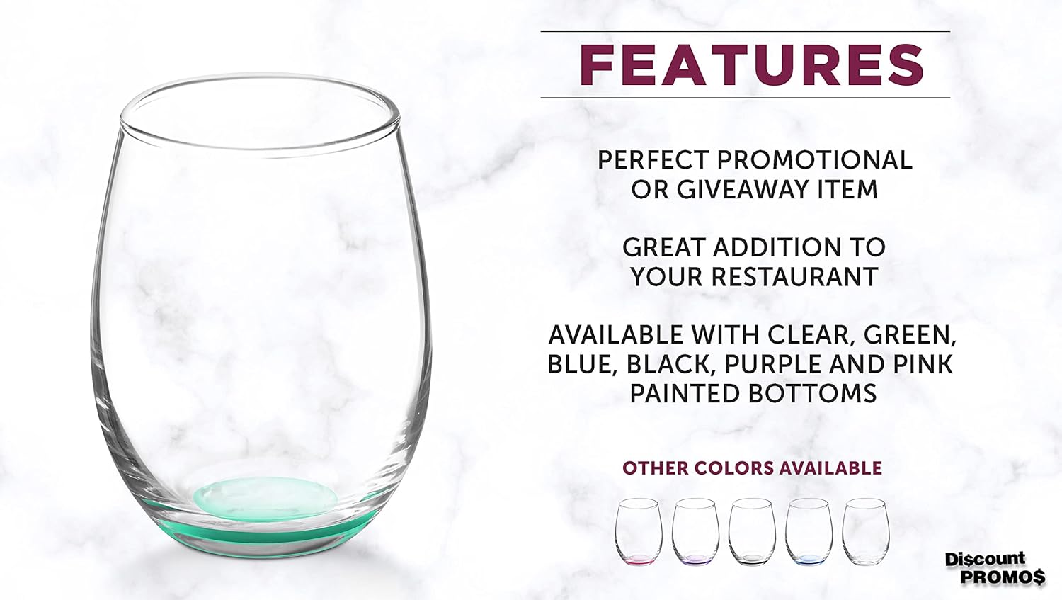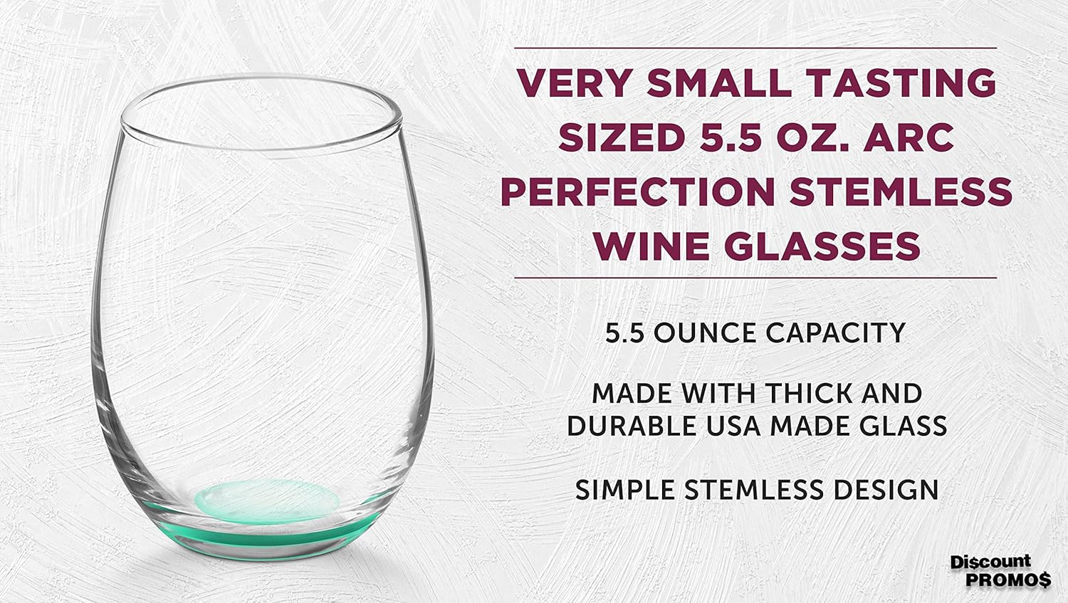 DISCOUNT PROMOS Stemless Wine Glasses by ARC 5.5 oz. Set of 12, Bulk Pack - Perfect for Hotel, Bar, Restaurant or Lounge - Green