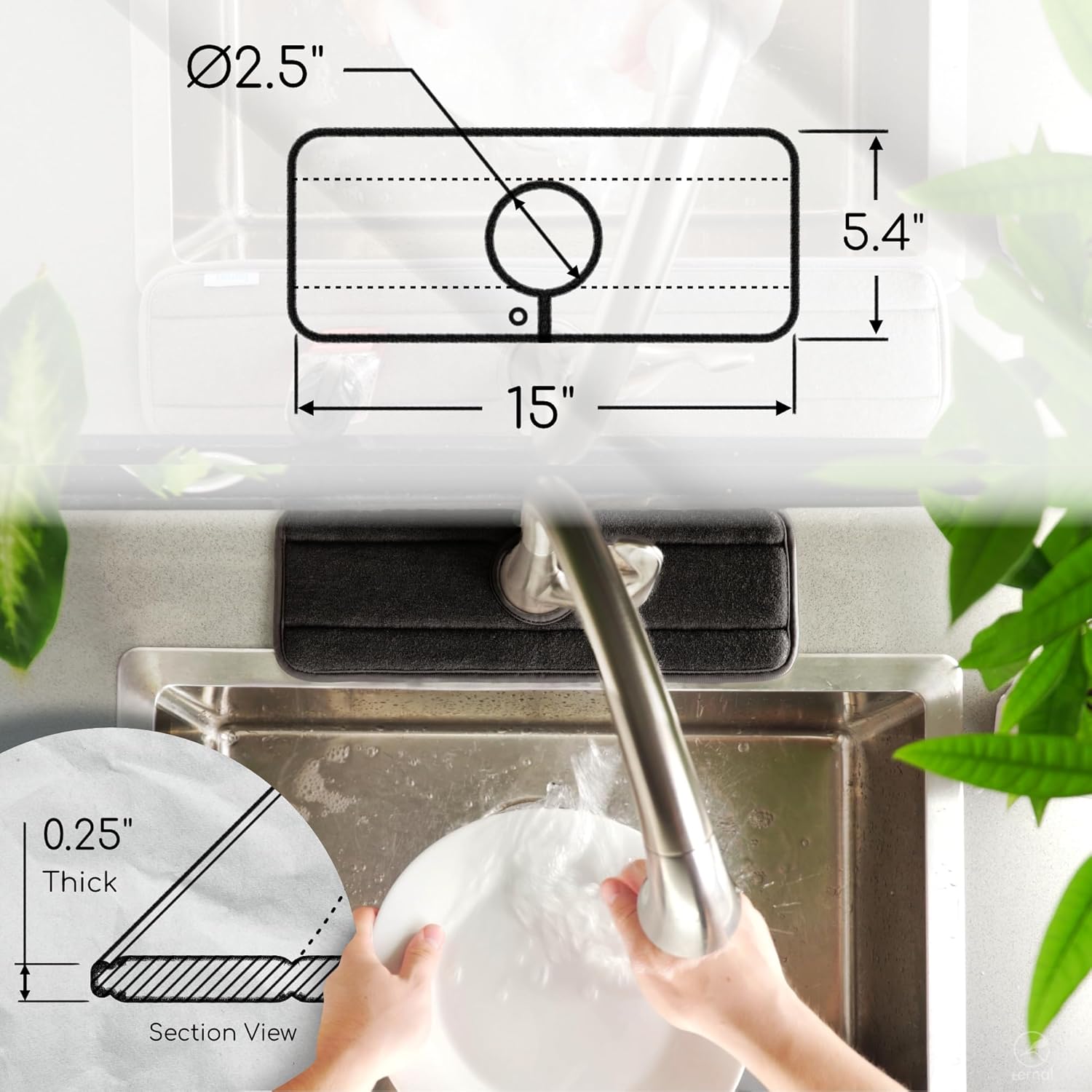 The Original Ternal Sinkmat Drip Catcher & Splash Guard, Faucet Mat for Sinks – Absorbent Microfiber, Machine Washable Counter Protector & Drying Mat for Kitchen, Bathroom or RV [Black, 15in, 1 Pack]