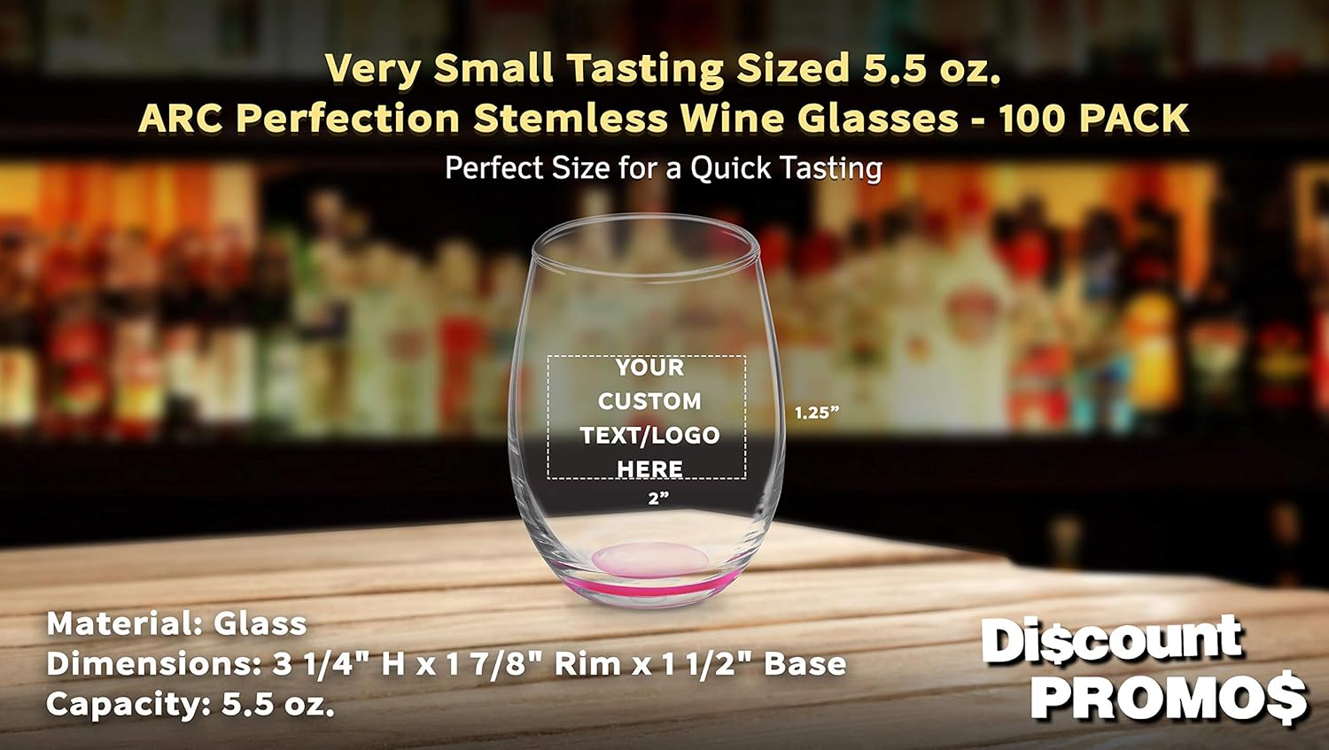 Custom Stemless Wine Glasses by ARC 5.5 oz. Set of 100, Personalized Bulk Pack - Perfect for Hotel, Bar, Restaurant or Lounge - Pink