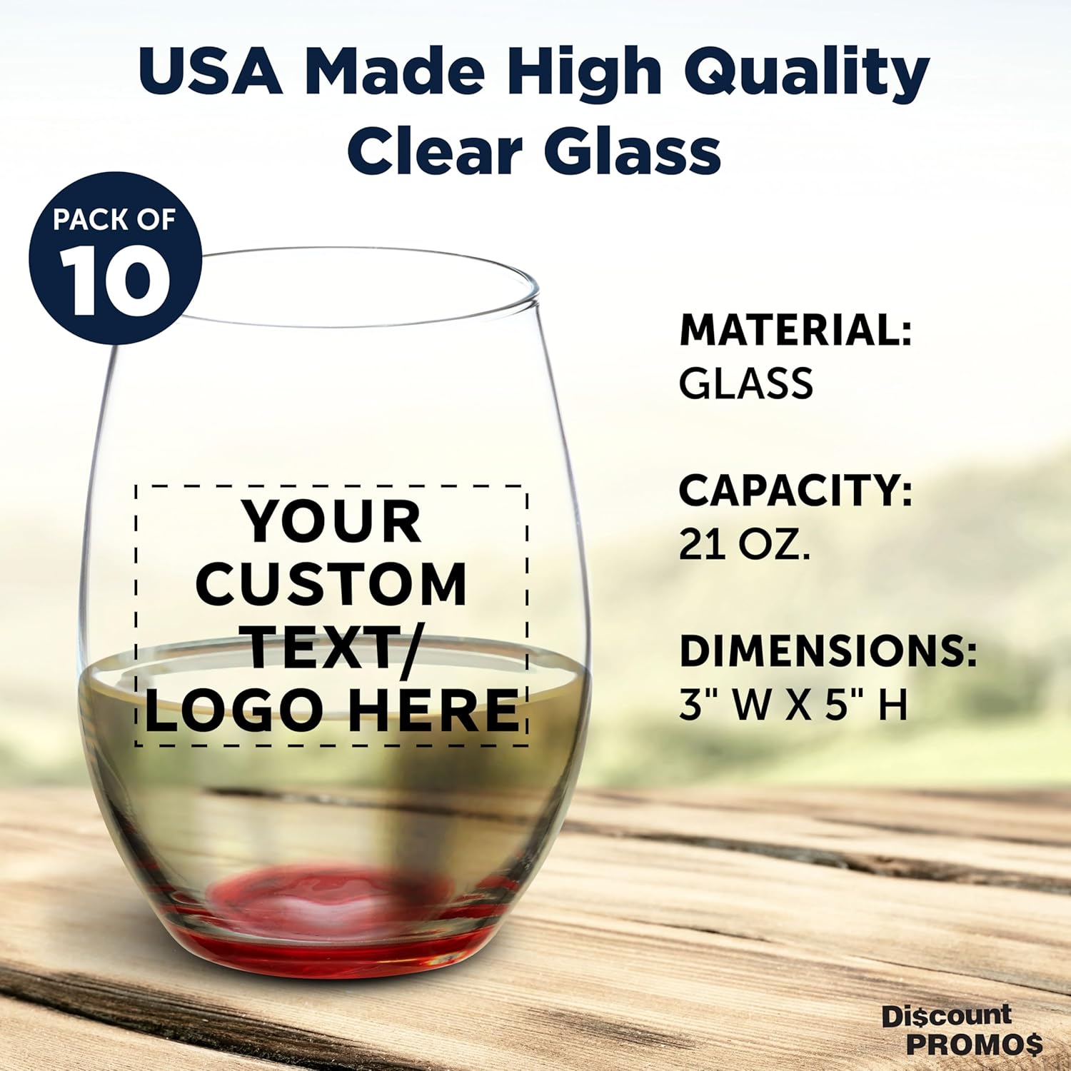 DISCOUNT PROMOS 10 ARC Stemless Wine Glasses Set, 21 oz. - Customizable Text, Logo - Chardonnay, Cabernet, Merlot, Sauvignon - Red