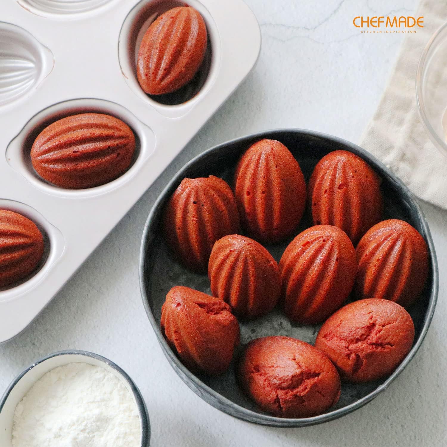 CHEFMADE Muffin Cake Pan, 12-Cavity Non-Stick Rugby-Shaped Bakeware for Oven Baking (Champagne Gold)