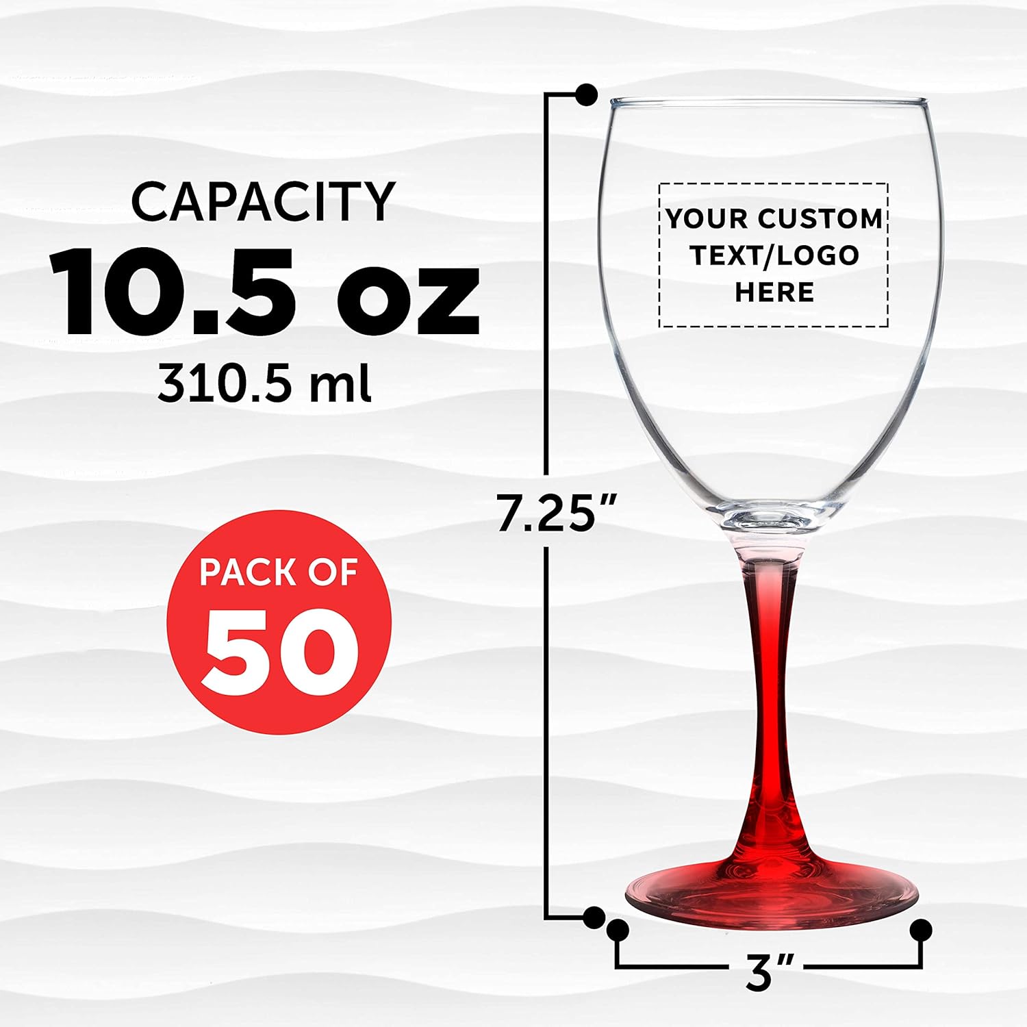 Custom Nuance Wine Glasses by ARC 10.5 oz. Set of 50, Personalized Bulk Pack - Restaurant Glassware, Perfect for Red Wine, White Wine, Cocktails - Red
