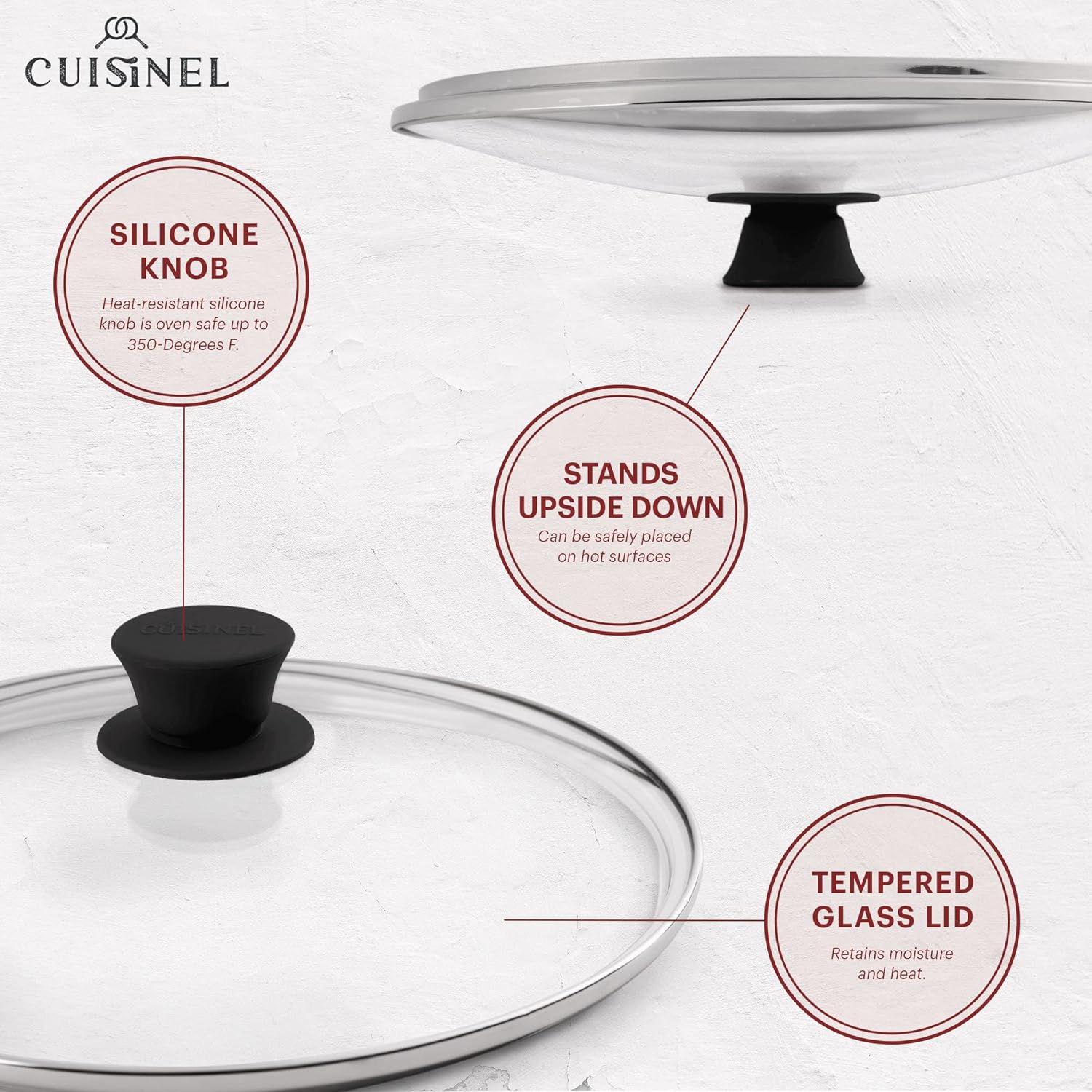 - STAINLESS STEEL REINFORCED RIM: Stainless rimmed lid adds an additional layer of reinforcement to these already sturdy tempered glass covers - making them break-resistant and shatter-resistant - and provides a comfortable seal to lock in steam, flavor and splashes. Smooth stainless steel also keeps cookware safe from scratches from the glass - while adding a dash of style and sophistication to your cookware arsenal.