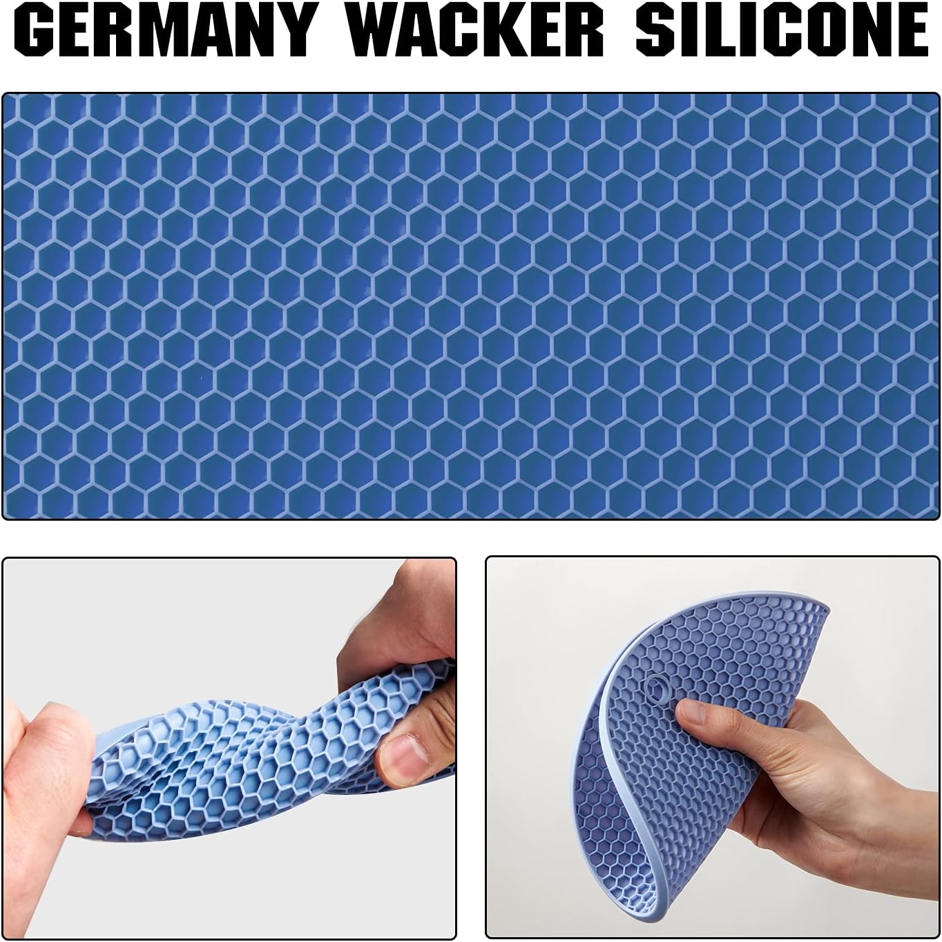 - GERMANY WACKER SILICONE: All trivets are manufactured using wacker silicone, temperature resistant from -105F to 446F, and oven, microwave, and dishwasher safe too.