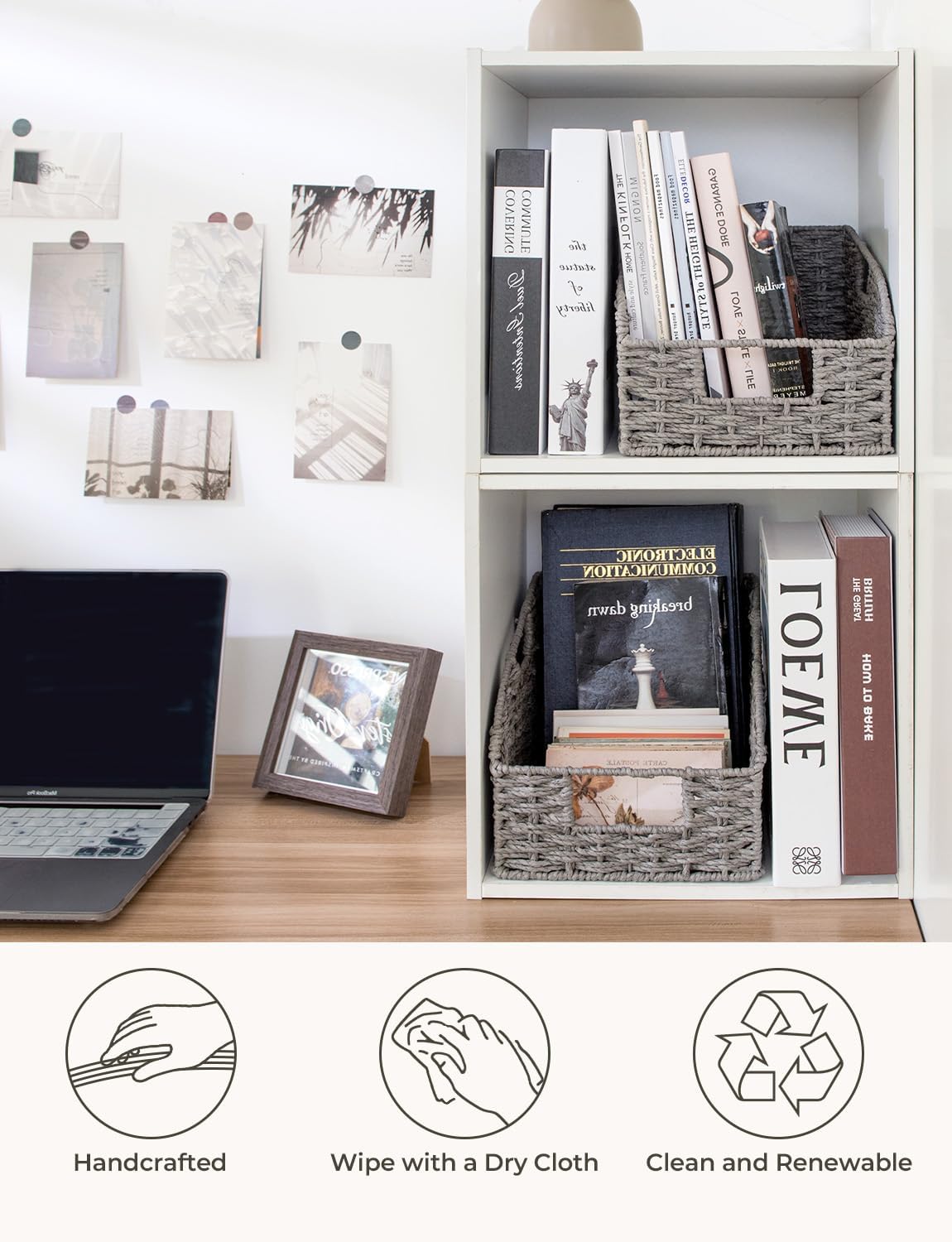 StorageWorks Wicker Baskets for Organizing, Pantry Organizers and Storage, Round Paper Rope Storage Basket for Pantry Shelves, Kitchen Counter, Gray, 2 Pack