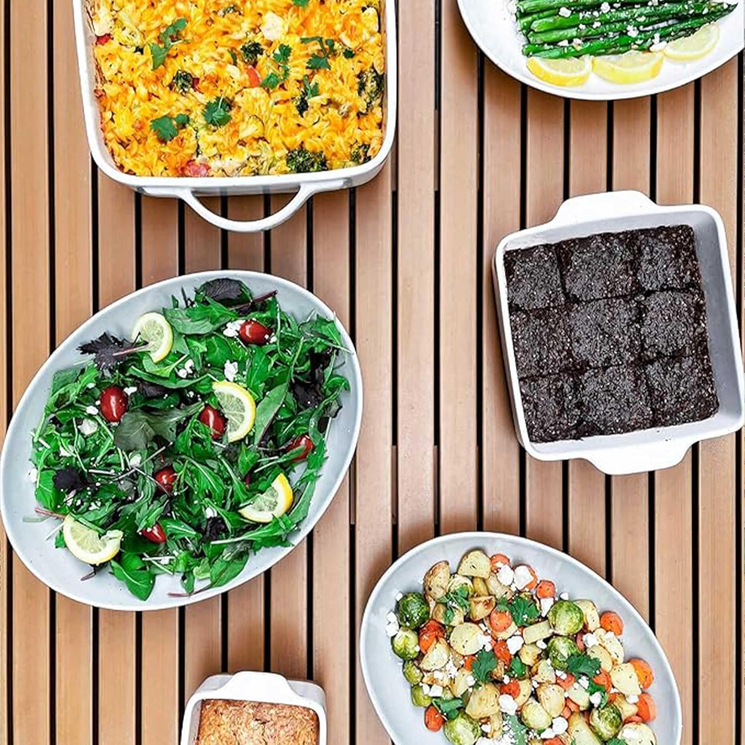 - OPTIMAL SIZES: Our serving dishes are designed with you in mind. Our oval serving bowls range from 11.8 inches to 13.5 inches long and can hold 35 to 55 ounces. Our serving bowls are slightly asymmetrical and perfect for family dinners or entertaining in a modern home.