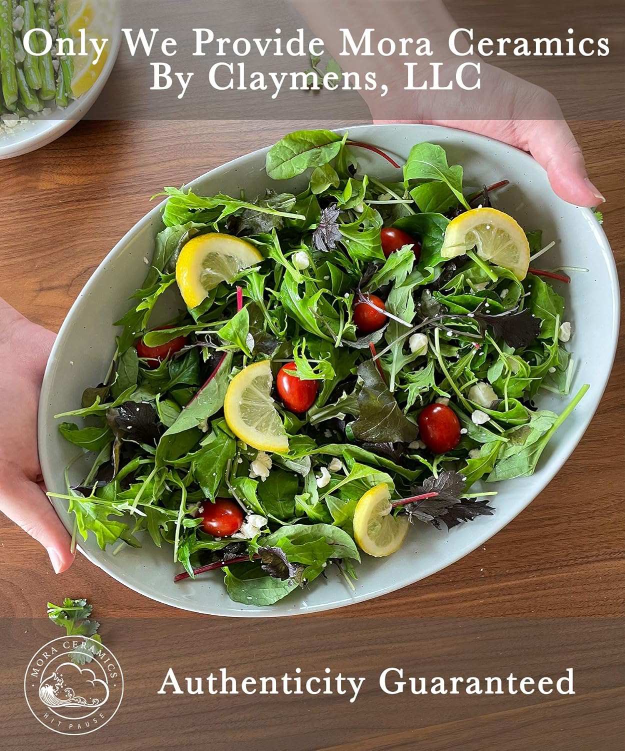 Mora Ceramic Large Serving Bowls- Set of 2 Oval Platters for Entertaining. Modern Kitchen Dishes for Dinner, Fruit, Salad, Turkey, etc. Oven, Dishwasher Safe, 55/35 oz, 13.5" / 11.8" - Earl Grey