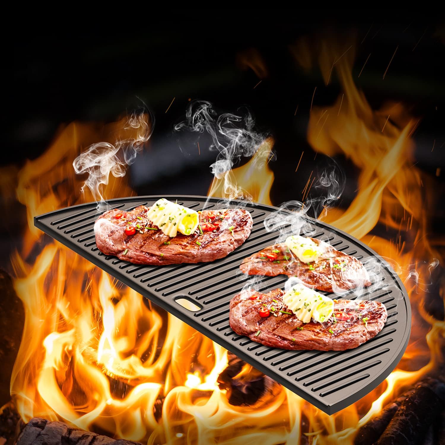 18" Half Moon Cast Iron Reversible Griddle for Kamado Joe KJ-23RHC Classic II, KJ23NRHCI Classic III, KJ23RH Classic I, Stand-Alone Classic, Large Big Green Egg, Kamado Grill Replacement Part