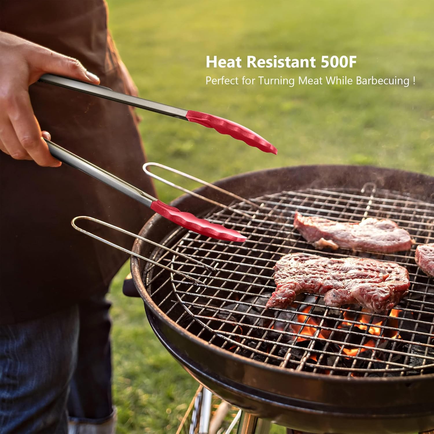Silicone Spatulas Set Turners Tongs Cooking Utensils Set High Heat Resistant Kitchen Scraper Spatulas for Cooking Mixing Baking BPA Free Dishwasher Safe, Red